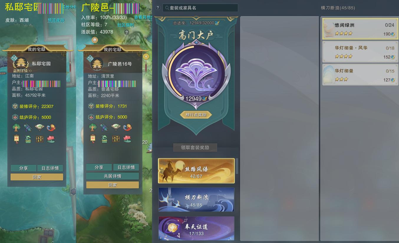 【家园】房屋等级16,社区等级了,私邸宅园,梓行点12949