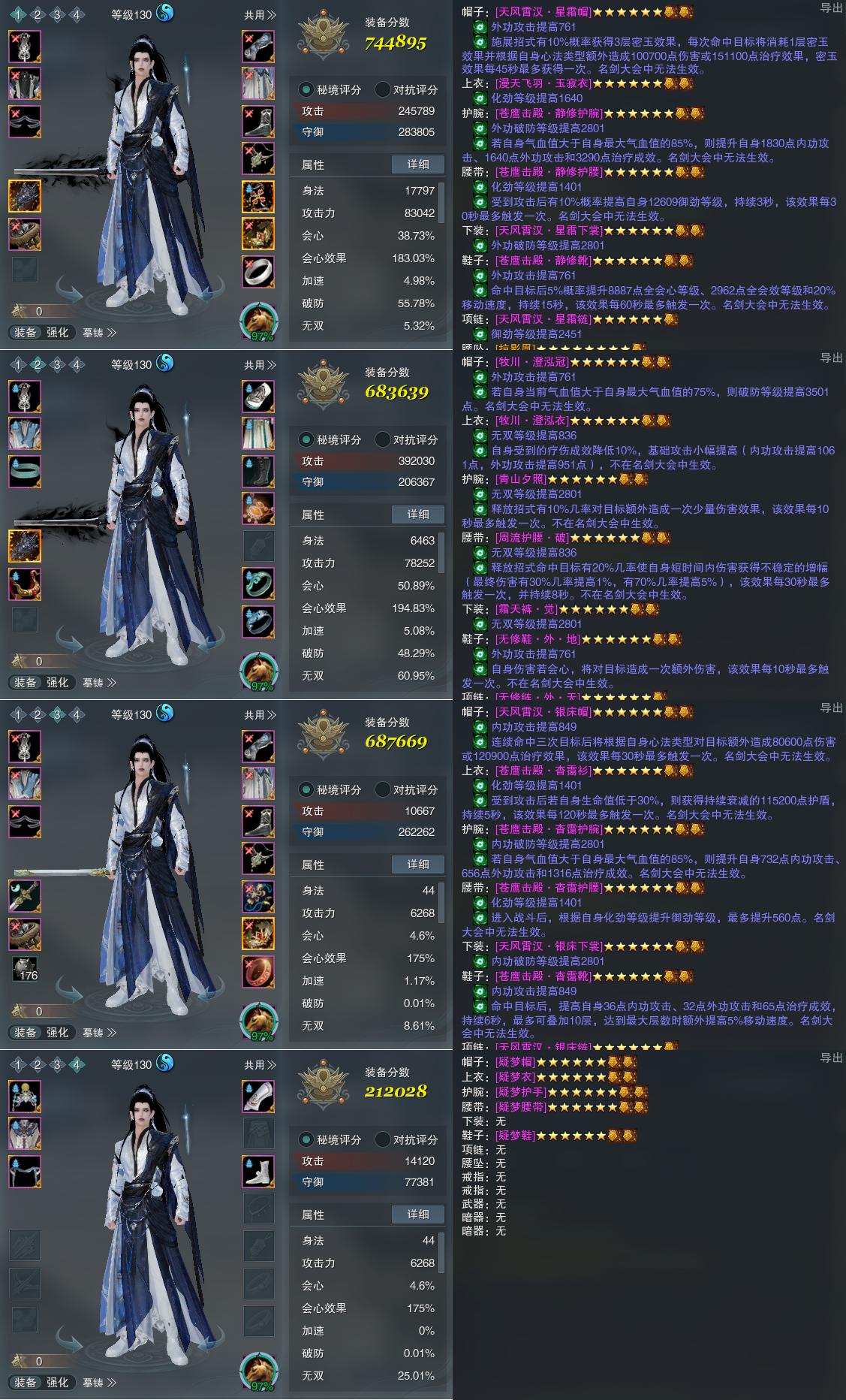 【装备】130级,太虚剑意PVP744895,纯阳装备二683639,紫霞功PVP687669,装备四212028