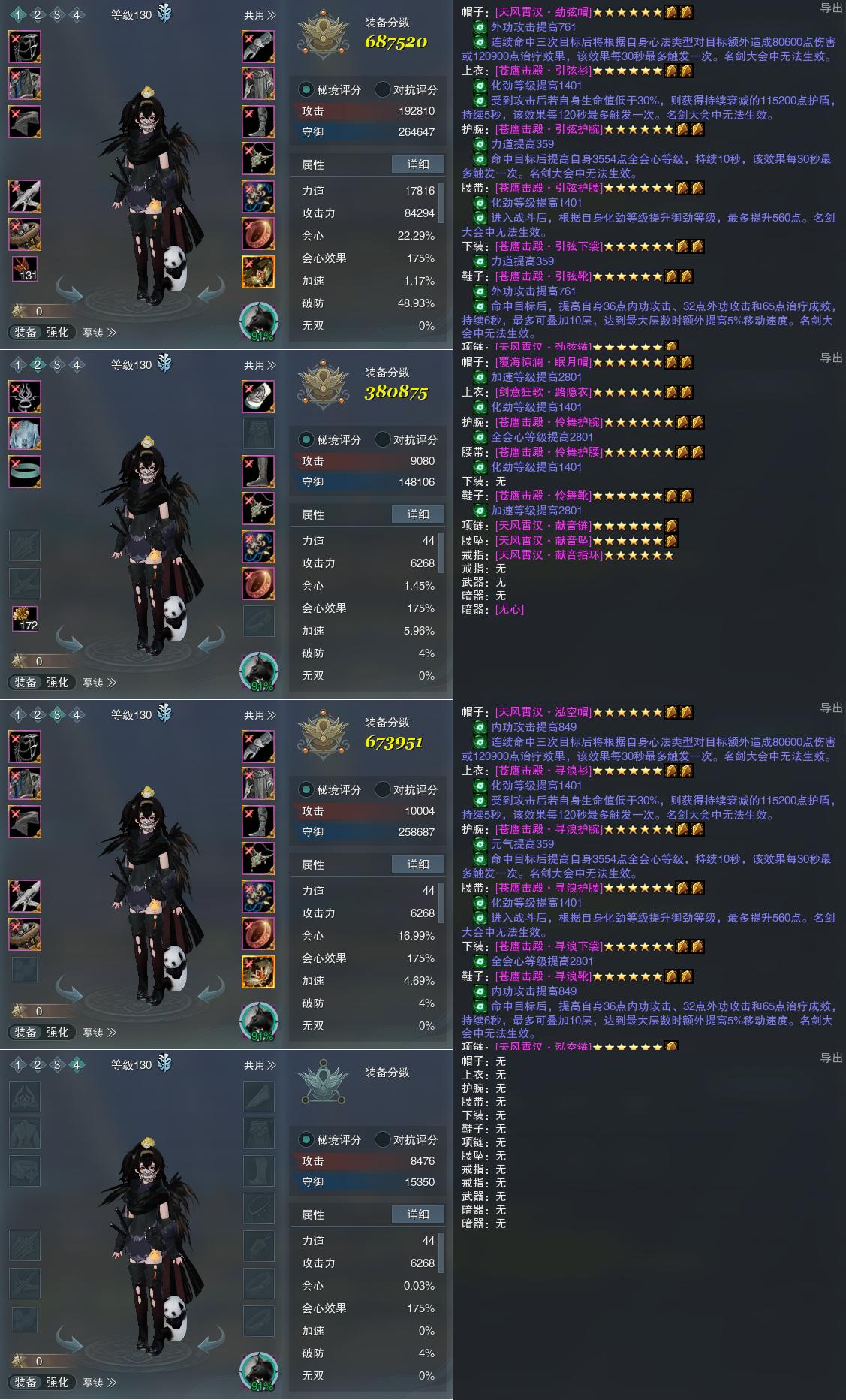 【装备】130级,惊羽诀PVP687520,唐门装备二380875,天罗诡道PVP673951,装备四0