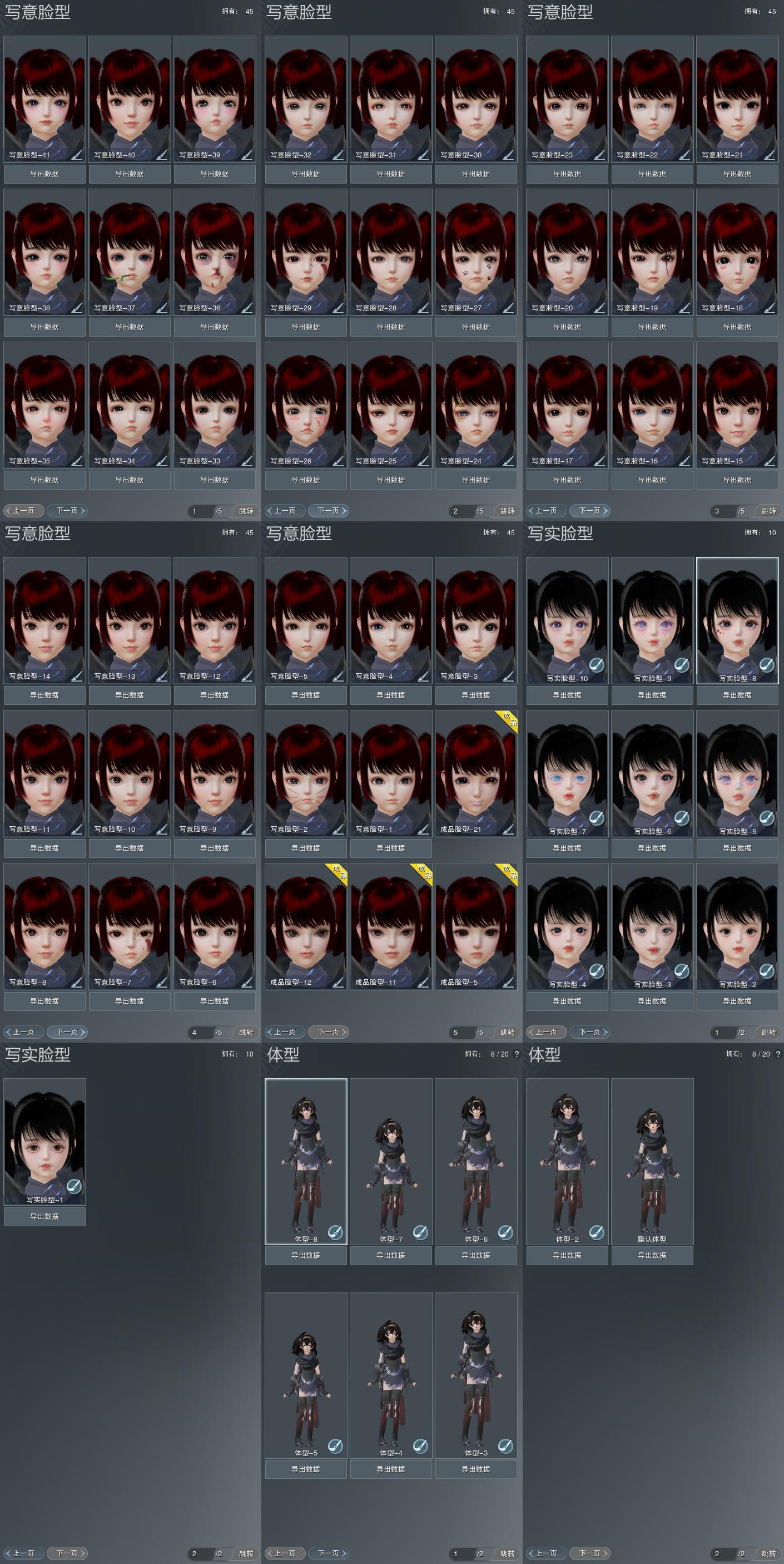 【捏脸】写意脸型45个,写实脸型10个,体型8个