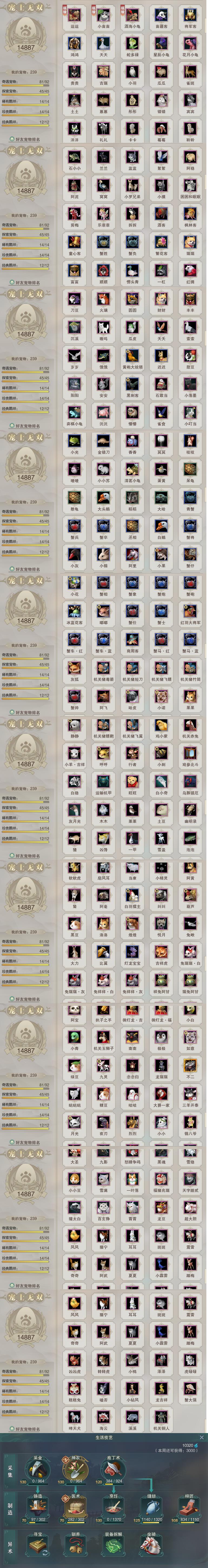 【同伴】唐小珂86级境界贰,李星云84级境界壹,沐晴柔82级境界壹,沈剑心81级境界壹,康宴别80级境界壹,温辞秋80级境界壹,盖聂志80级境界壹,白鹊志79级境界壹,贺闲志76级境界壹,茸茸志75级境界壹,年小熊74级境界壹,李萼志74级境界壹,卫庄志73级境界壹,月嘉禾72级境界壹,阮归云69级境界壹,温折枝67级境界壹,费大劲66级境界壹,李逍遥64级境界壹,年小鹿63级境界壹,阮闲舟63级境界壹,燕子娘58级境界壹,景天志58级境界壹