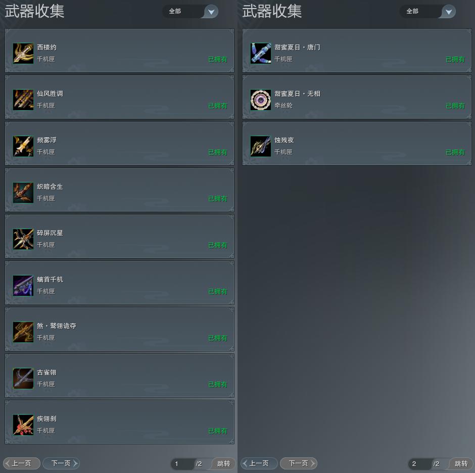【拓印】19页外观收集,12武器拓印,拓印95CW碎屏沉星,拓印100CW螭首千机,拓印100奇遇CW煞·鹫翎诡夺,拓印110CW古雀翎