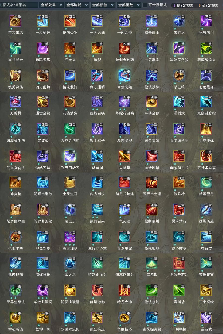 【橙武】(仅本门派)[120小铁*947, 130小铁*22, 110小铁*211, 100小铁*53, 95小铁*153, 90小铁*24, 80小铁*214, 70小铁*219, 120CW摧霜, 110CW古雀翎, 100CW螭首千机, 100CW鹫翎诡夺, 95CW碎屏沉星, 80CW地渊沉星, 70CW鸢翔天, 门派特效抱朴狩天]