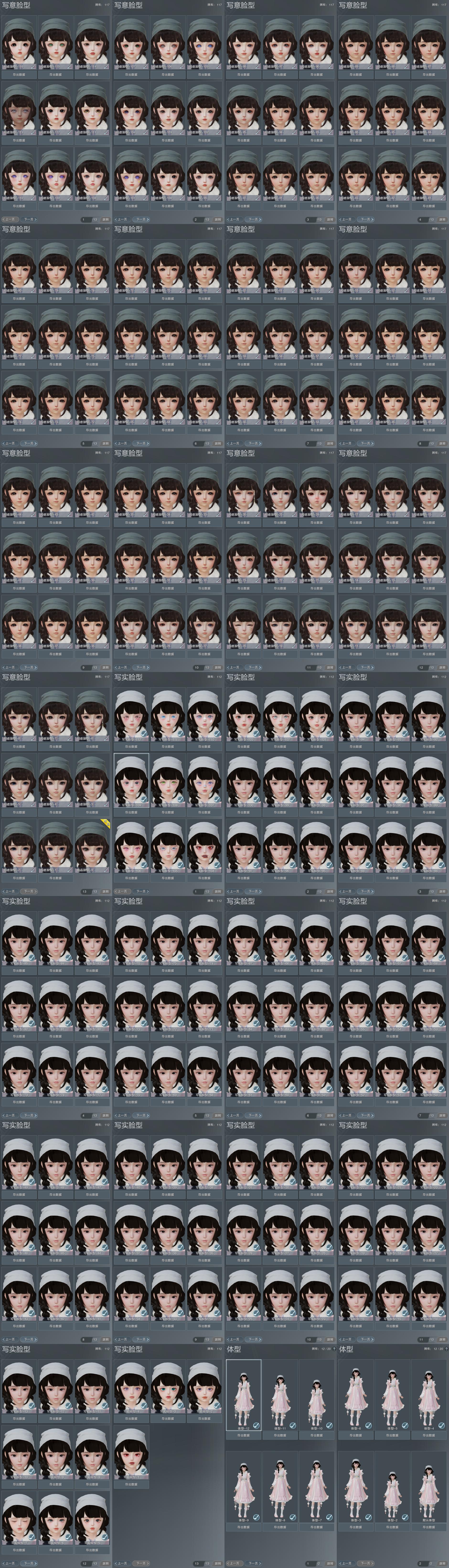【捏脸】写意脸型117个,写实脸型112个,体型12个