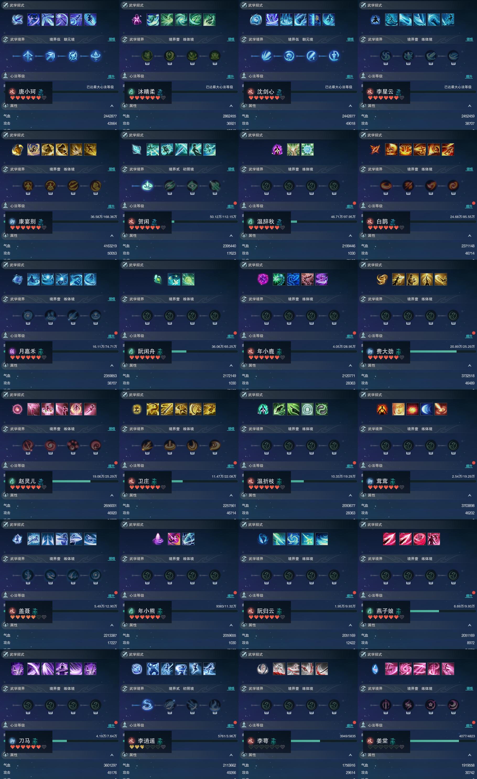 【同伴】唐小珂90级境界伍,沐晴柔90级境界壹,沈剑心90级境界伍,李星云90级境界壹,康宴别89级境界壹,贺闲意85级境界贰,温辞秋84级境界壹,白鹊慈83级境界壹,月嘉禾82级境界壹,阮闲舟81级境界壹,年小鹿75级境界壹,费大劲74级境界壹,赵灵儿76级境界壹,卫庄志73级境界壹,温折枝72级境界壹,茸茸志72级境界壹,盖聂志69级境界壹,年小熊68级境界壹,阮归云67级境界壹,燕子娘67级境界壹,刀马志65级境界壹,李逍遥60级境界贰,李萼志44级境界壹,姜棠志42级境界壹