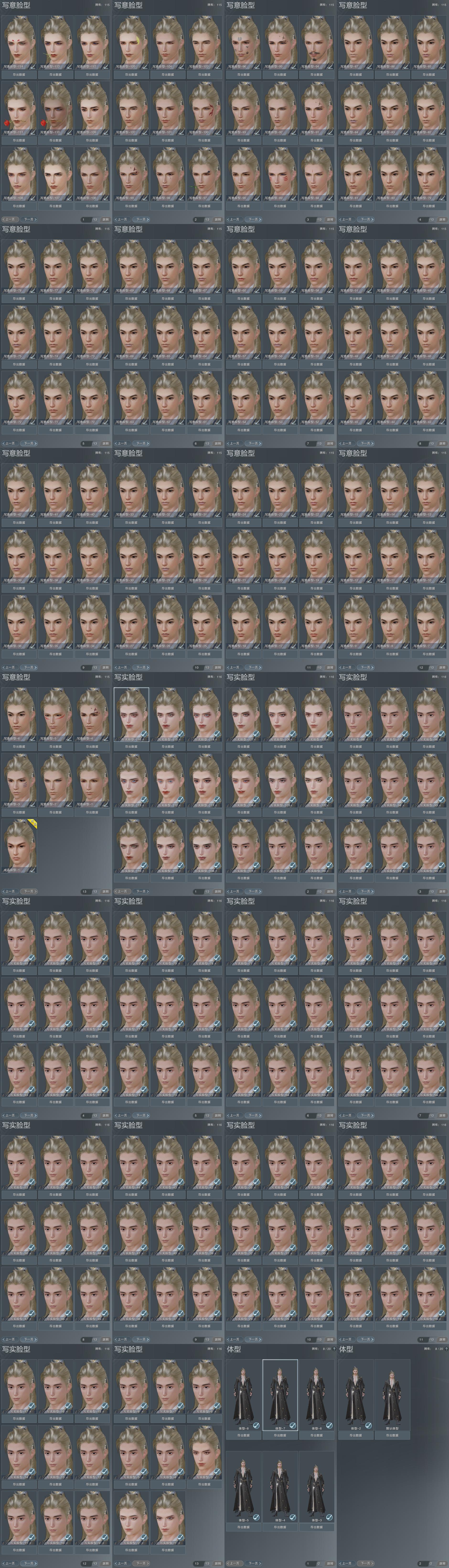 【捏脸】写意脸型115个,写实脸型116个,体型8个