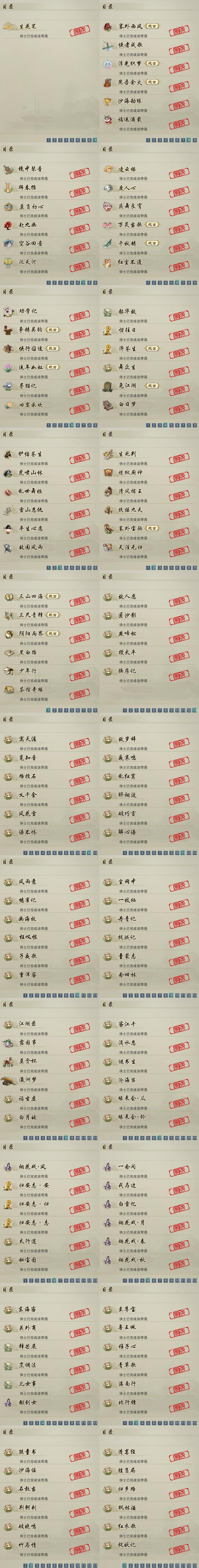 【奇遇】49个[白日梦, 天涯无归, 三山四海, 劝学记, 雪山恩仇, 阴阳两界, 莫负初心, 兔江湖, 平生心愿, 黑白路, 惜往日, 乱世舞姬, 塞外宝驹, 争铸吴钩, 韶华故, 虎啸山林, 济苍生, 护佑苍生, 少年行, 故园风雨, 扶摇九天, 三尺青锋, 流年如虹, 舞众生, 清风捕王, 侠行囧途, 寻猫记, 茶馆奇缘, 庆舞良宵, 万灵当歌]