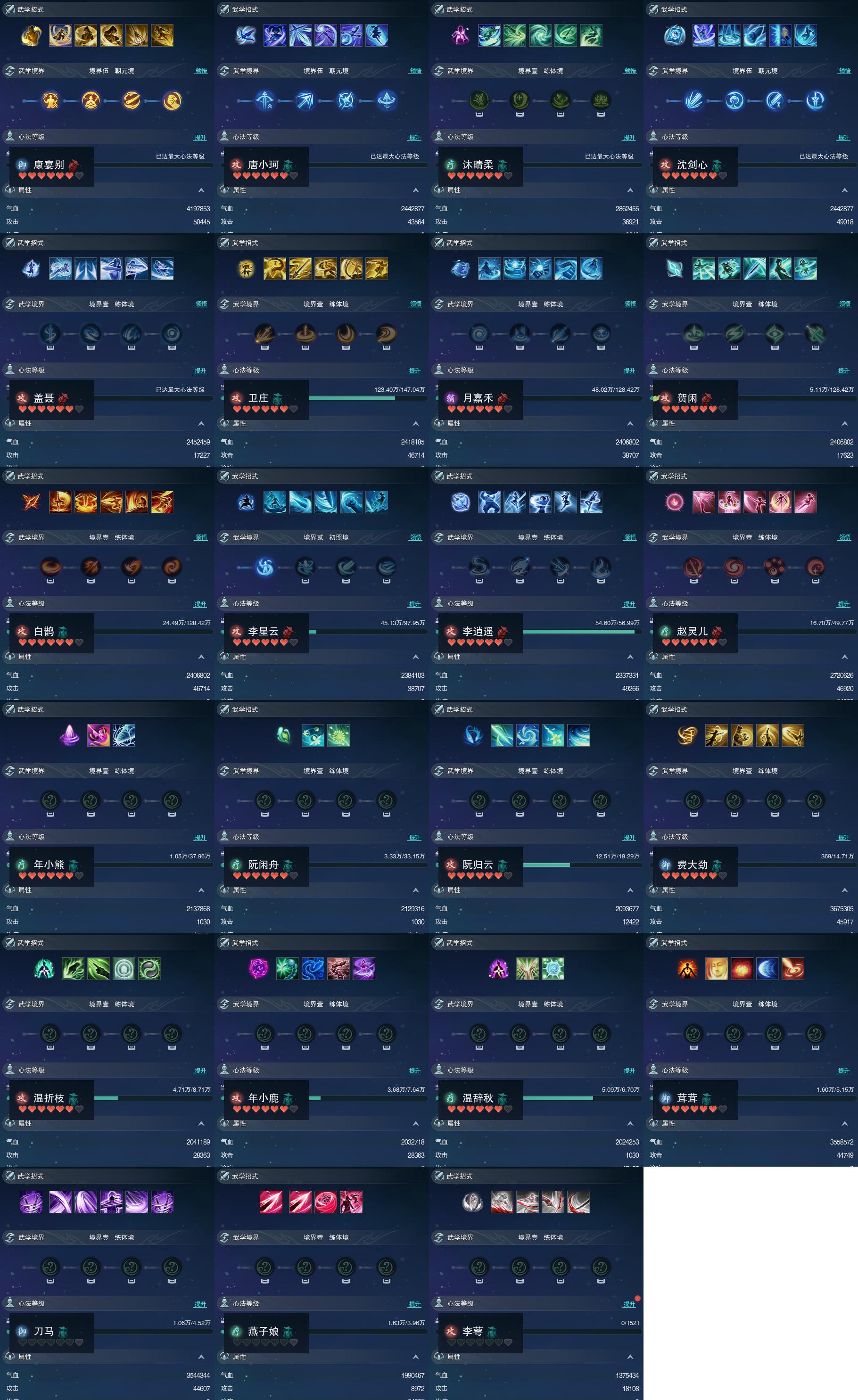 【同伴】康宴别90级境界伍,唐小珂90级境界伍,沐晴柔90级境界壹,沈剑心90级境界伍,盖聂90级境界壹,卫庄志87级境界壹,月嘉禾86级境界壹,贺闲86级境界壹,白鹊志86级境界壹,李星云84级境界贰,李逍遥80级境界壹,赵灵儿79级境界壹,年小熊77级境界壹,阮闲舟76级境界壹,阮归云72级境界壹,费大劲70级境界壹,温折枝66级境界壹,年小鹿65级境界壹,温辞秋64级境界壹,茸茸志62级境界壹,刀马志61级境界壹,燕子娘60级境界壹,李萼志1级境界壹