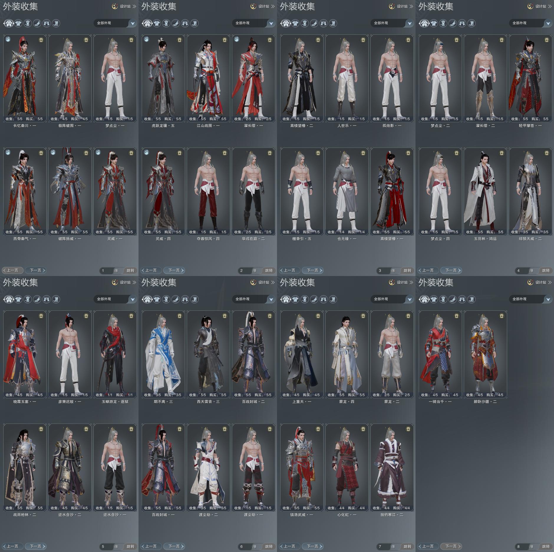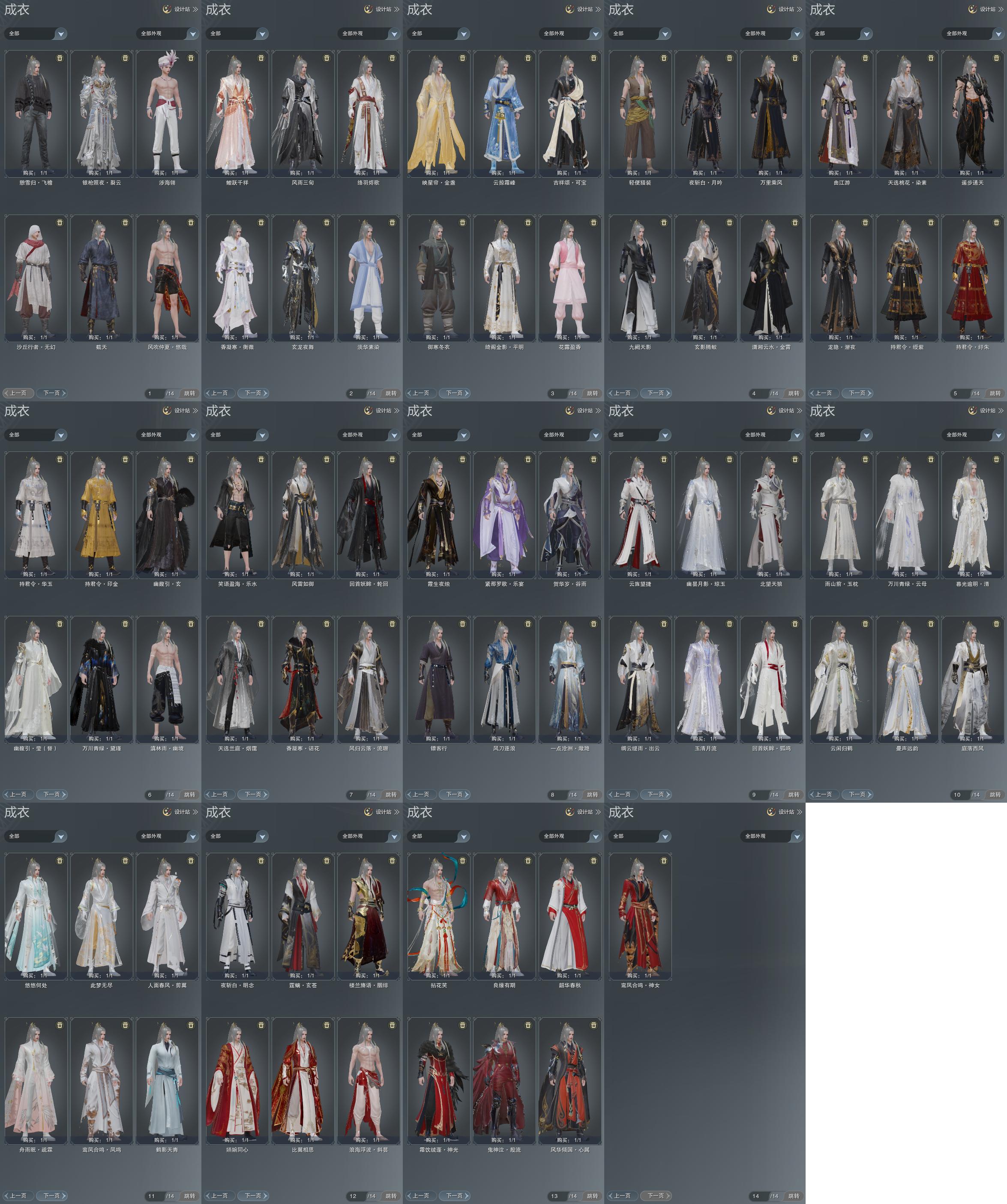 单盒成衣:[四代七夕衣, 一代花朝粉衣, 一代乘风衣, 黑藏袍, 红白妖龙衣, 红黑妖龙衣, 蓝沧洲盒衣, 紫持君衣, 金持君衣, 白幽馥衣替, ]
