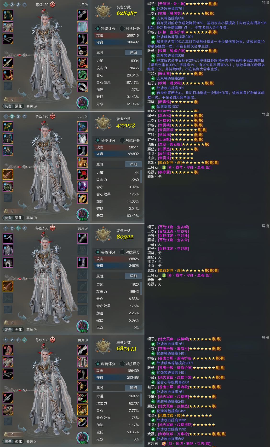 【装备】130级,傲血战意PVE628487,铁牢律PVE477073,装备三80322,傲血战意PVP687443