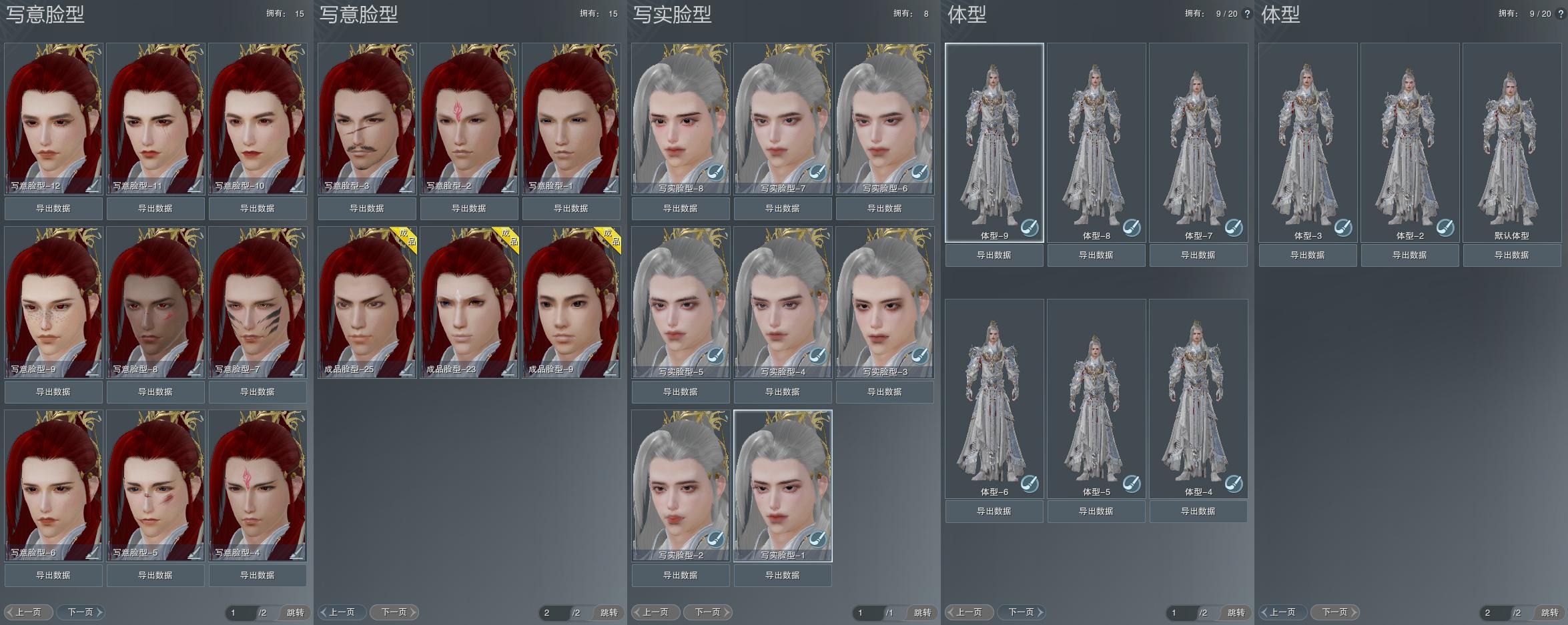【捏脸】写意脸型15个,写实脸型8个,体型9个