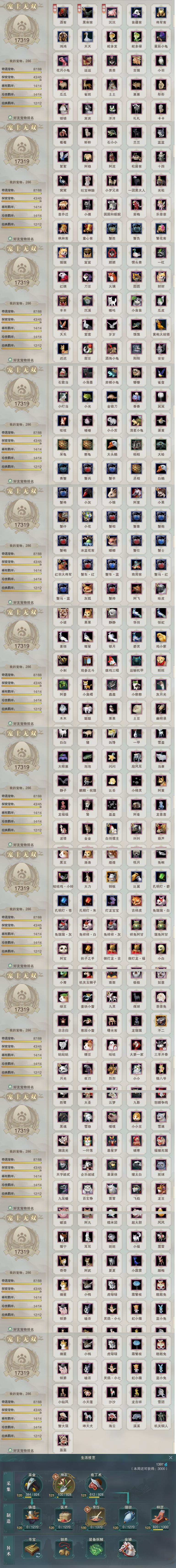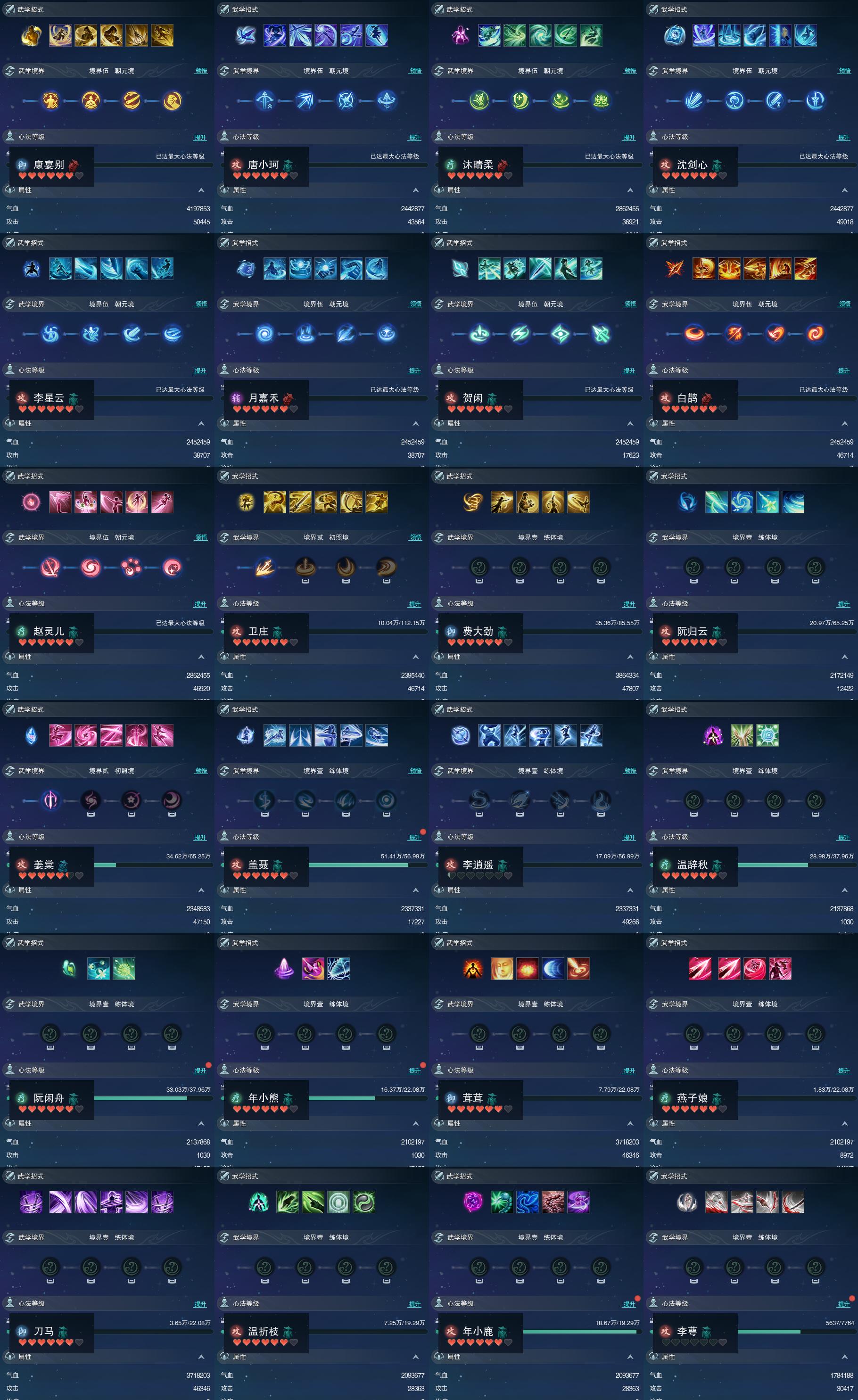 【同伴】康宴别90级境界伍,唐小珂90级境界伍,沐晴柔90级境界伍,沈剑心90级境界伍,李星云90级境界伍,月嘉禾90级境界伍,贺闲志90级境界伍,白鹊90级境界伍,赵灵儿90级境界伍,卫庄志85级境界贰,费大劲83级境界壹,阮归云81级境界壹,姜棠意81级境界贰,盖聂志80级境界壹,李逍遥80级境界壹,温辞秋77级境界壹,阮闲舟77级境界壹,年小熊73级境界壹,茸茸志73级境界壹,燕子娘73级境界壹,刀马志73级境界壹,温折枝72级境界壹,年小鹿72级境界壹,李萼志47级境界壹