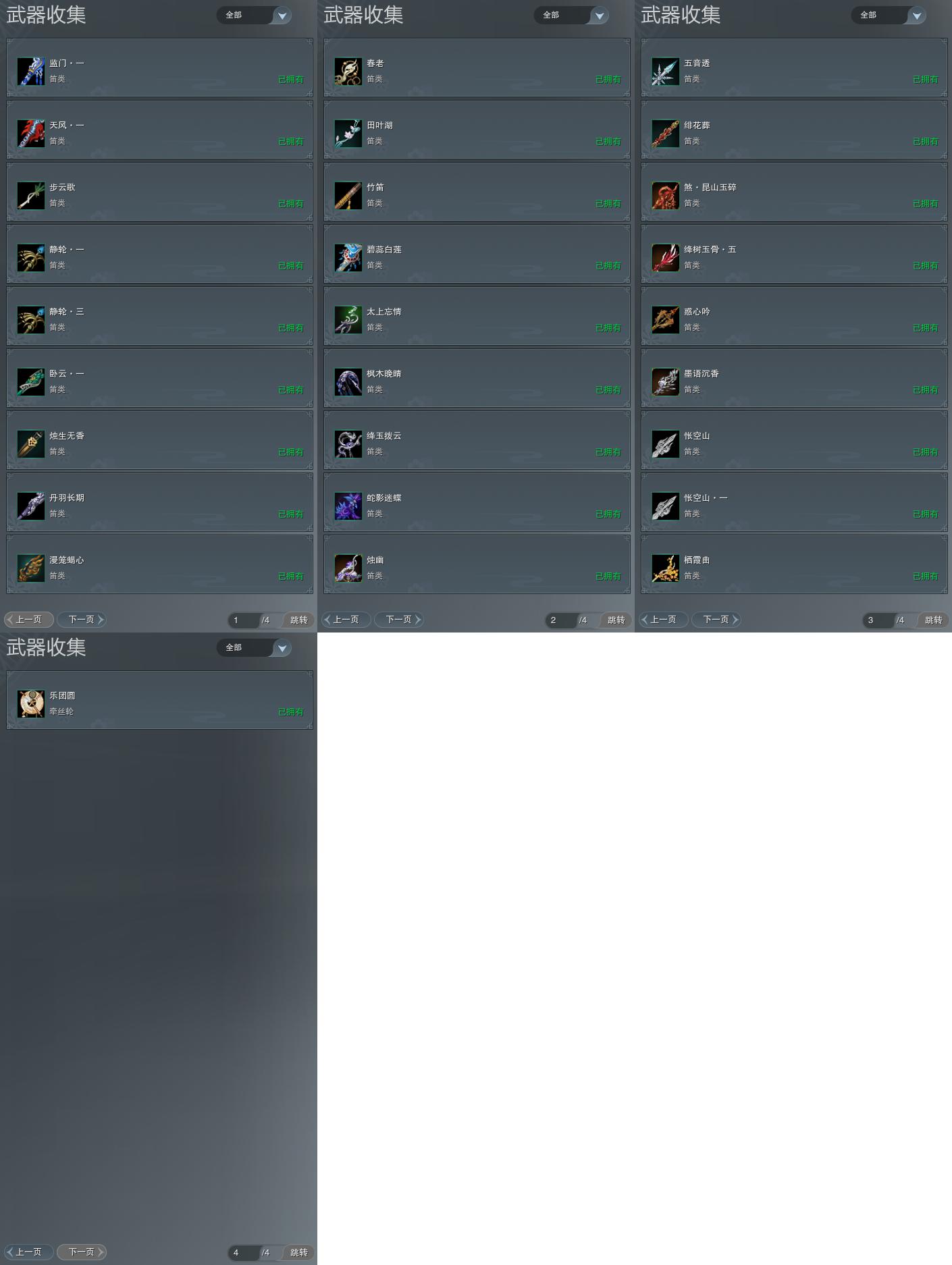 【背挂】793个[阴阳剑, 恶人弓, 蓝黑白路, 淡墨清毫, 毽子, 素心忘弦, 燕歌行, 舟雨眠·暮霭·伞, 夕殿阑灯, 二代重阳笛子, 月梦清秋·扇, 相思云鸢·伞, 冷魄琼枝, 凤鸣梧枝, 西天梵音, 红纶苍鬓, 冰壶咽·霜月, 晚枝禅云·紫萸, 幽篁栖桐·远怀, 石剑溟灵]