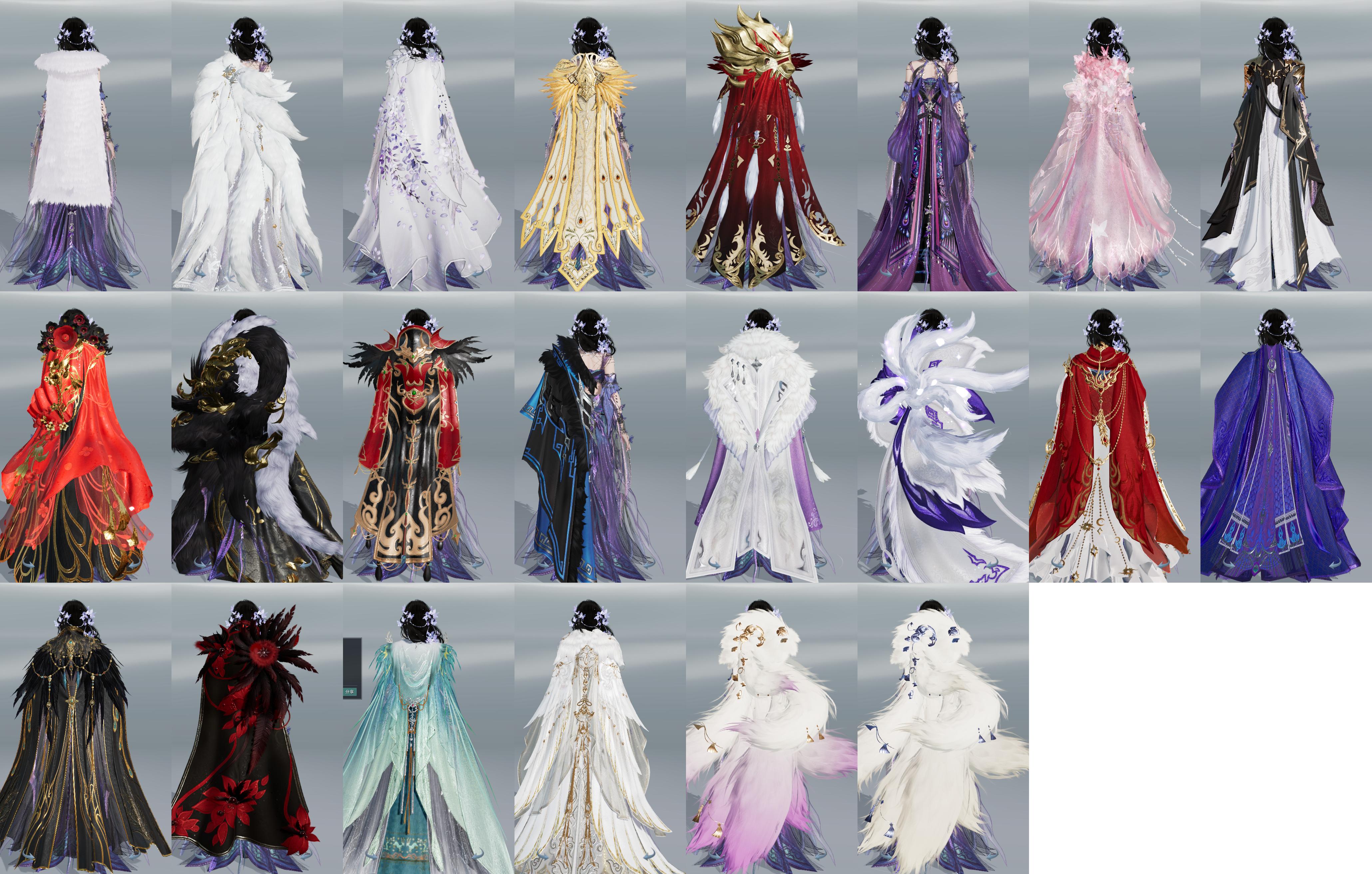 【披风】27个,[熔金烈风, 衍天预热披风, 7W资历披风, 一代浩气, 雪啸刚风, 狐狸毛, 狐狸毛, 情R枕, 14W资历披风, 三山披风, 奇遇披风, 喵盒子披风, 毒盒子披风, 迷金盒披风, 药盒披风, 虎盒披风, 二代毒盒披风, 炸毛, 八周黑, 汉宫飞鸾, 粉蝶梦披风, 灵狐披风]