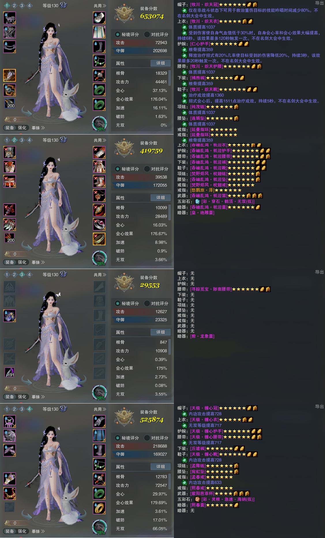 【装备】130级,五毒装备一653074,补天诀PVP419759,装备三29553,毒经PVE525874