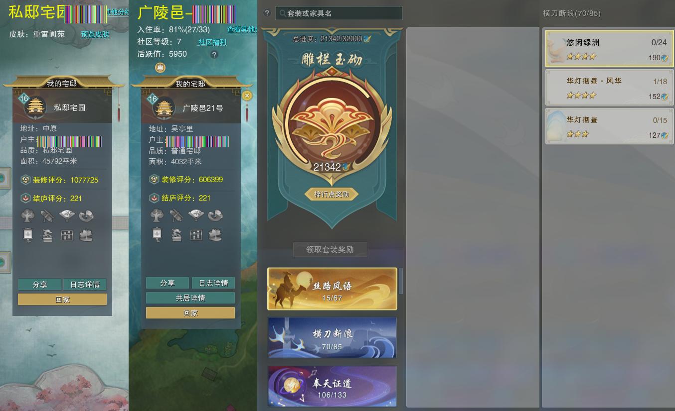 【家园】房屋等级16,社区等级了,私邸宅园,梓行点21342