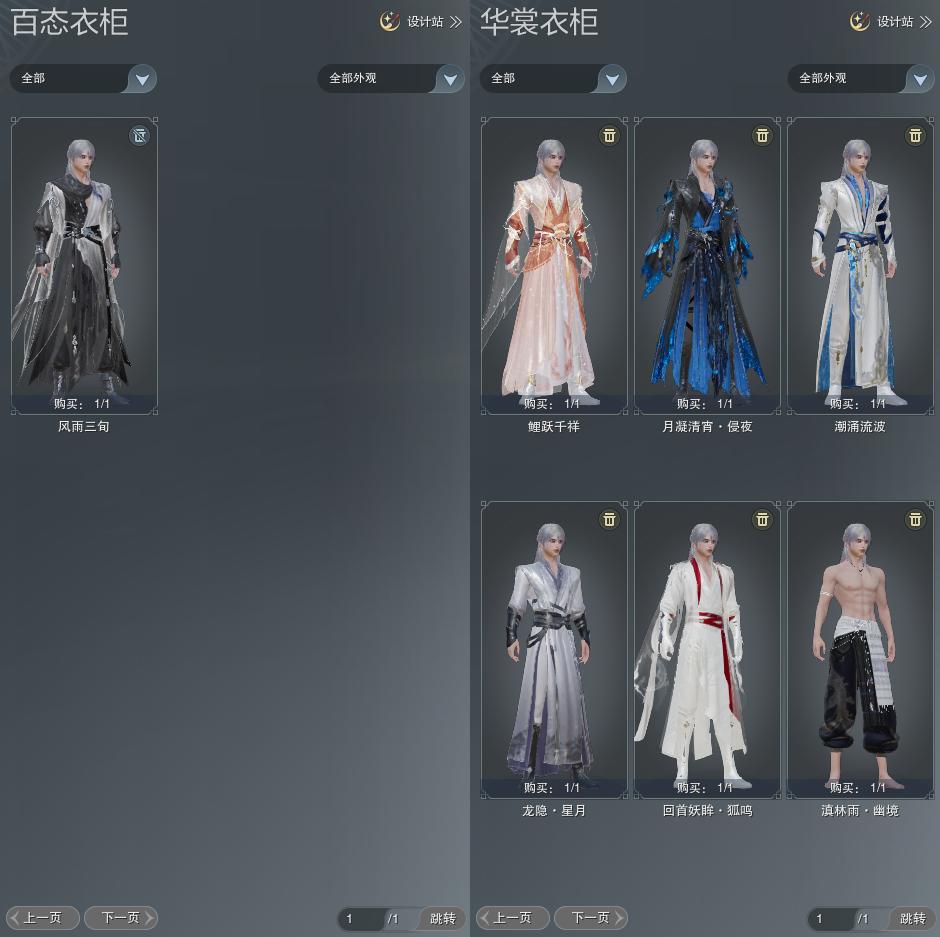 【成衣】总计7件,单盒成衣4件,限时限量1件,商城2件,下架0件
