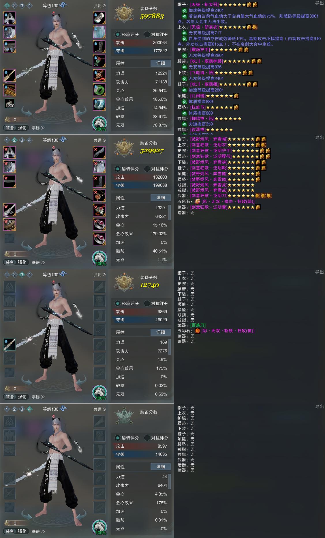 【装备】130级,孤锋诀PVE597883,孤锋诀PVP529927,装备三12740,装备四0