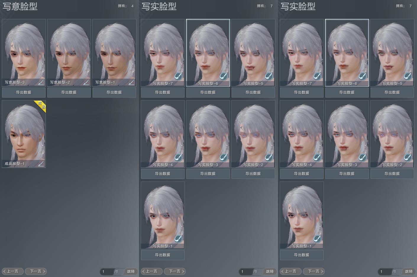 【捏脸】写意脸型4个,写实脸型7个,体型1个