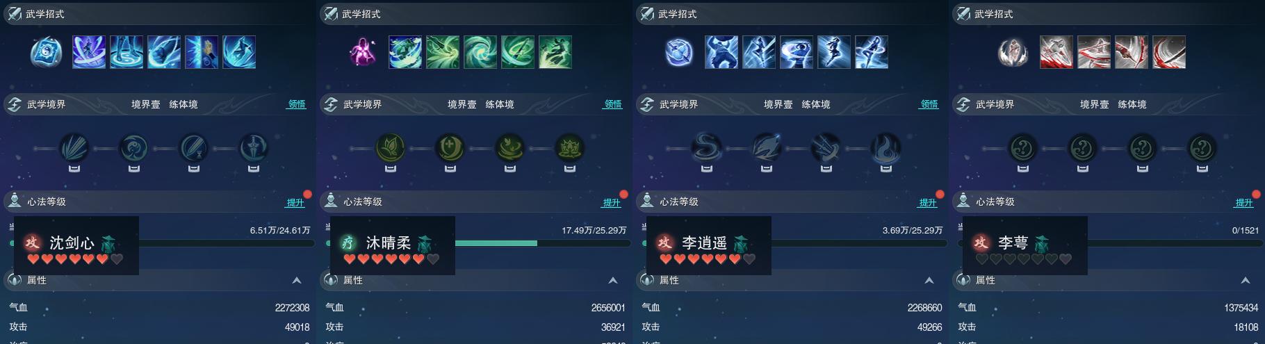 【同伴】沈剑心75级境界壹,沐晴柔74级境界壹,李逍遥74级境界壹,李萼志1级境界壹