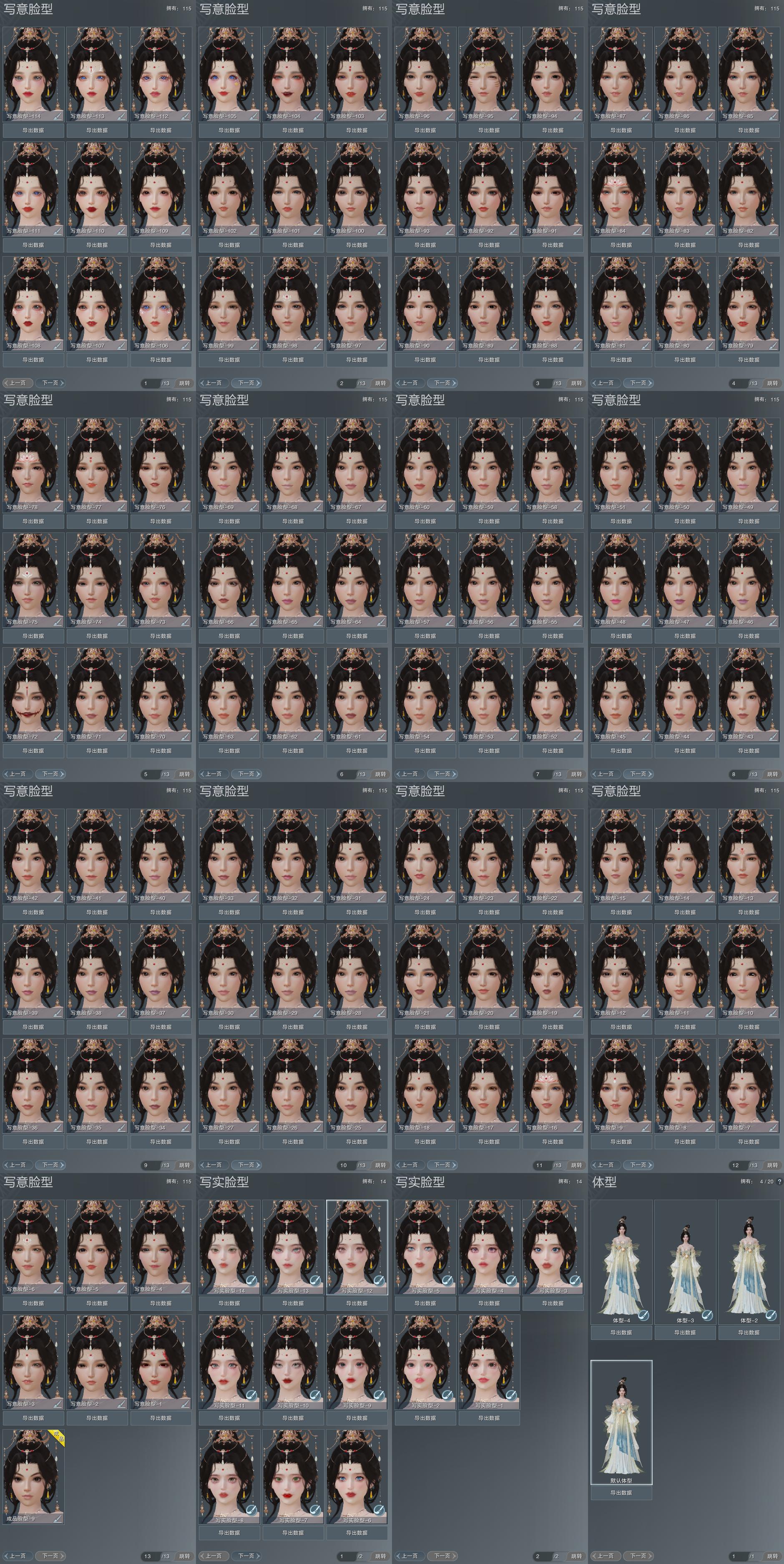【捏脸】写意脸型115个,写实脸型14个,体型4个