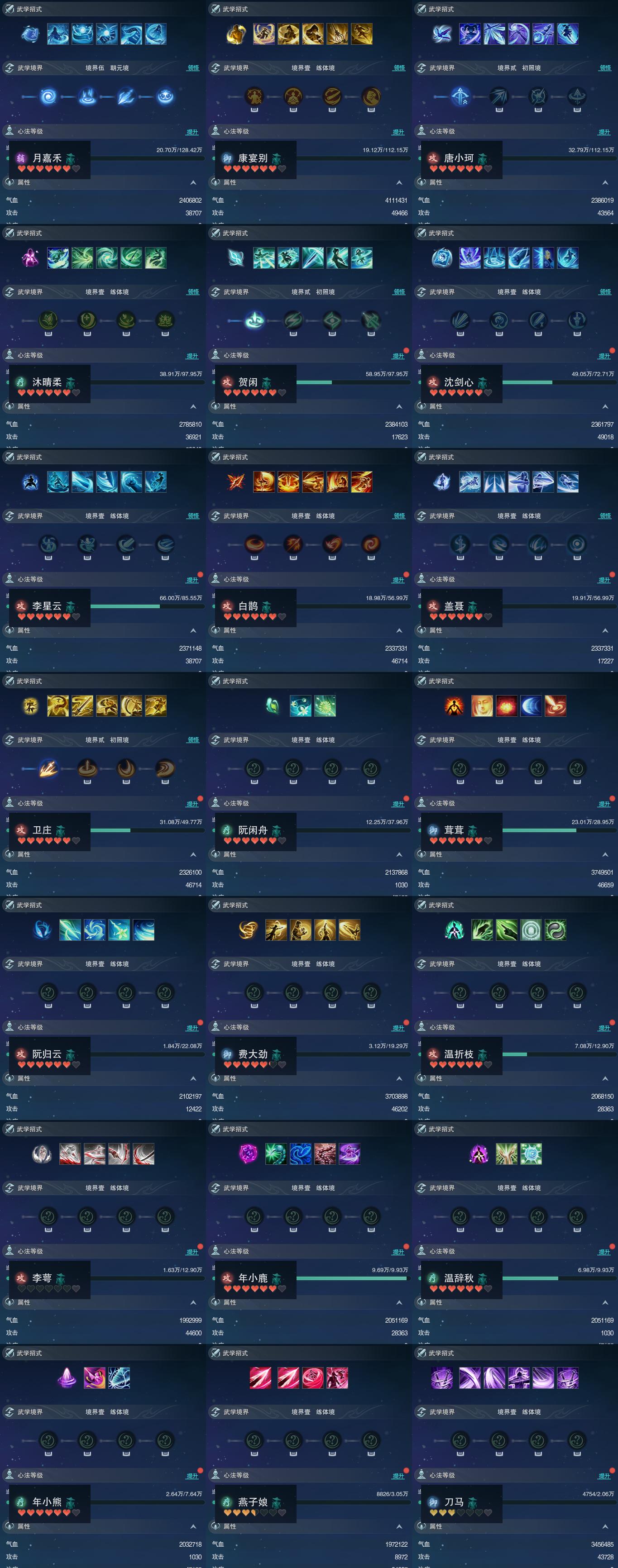 【同伴】月嘉禾86级境界伍,康宴别85级境界壹,唐小珂85级境界贰,沐晴柔84级境界壹,贺闲志84级境界贰,沈剑心83级境界壹,李星云83级境界壹,白鹊志80级境界壹,盖聂志80级境界壹,卫庄志79级境界贰,阮闲舟77级境界壹,茸茸志75级境界壹,阮归云73级境界壹,费大劲72级境界壹,温折枝69级境界壹,李萼志69级境界壹,年小鹿67级境界壹,温辞秋67级境界壹,年小熊65级境界壹,燕子娘58级境界壹,刀马志55级境界壹