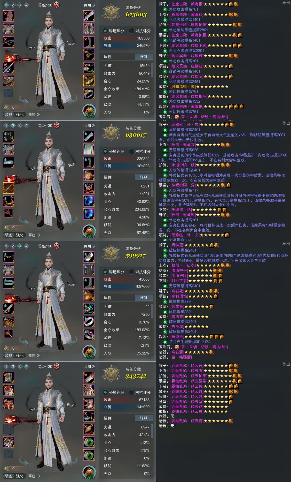 【装备】130级,傲血战意PVP673603,傲血战意PVE630617,铁牢律PVE599917,装备四343742