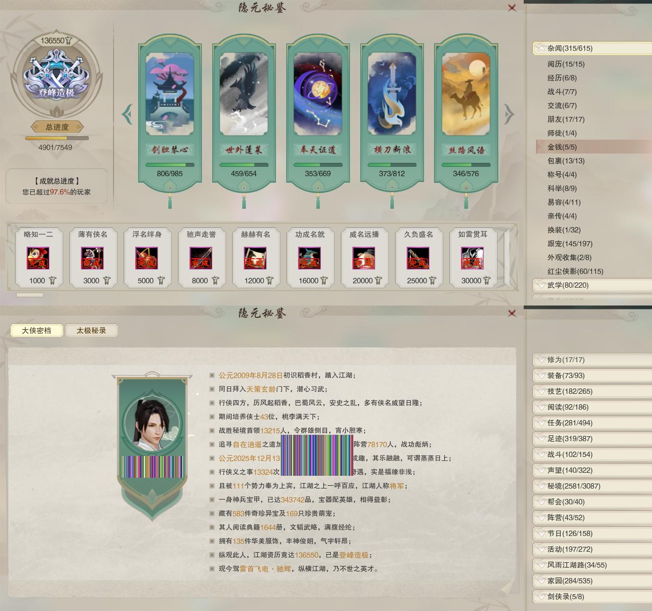 【称号】[纵江湖, 侠万里]