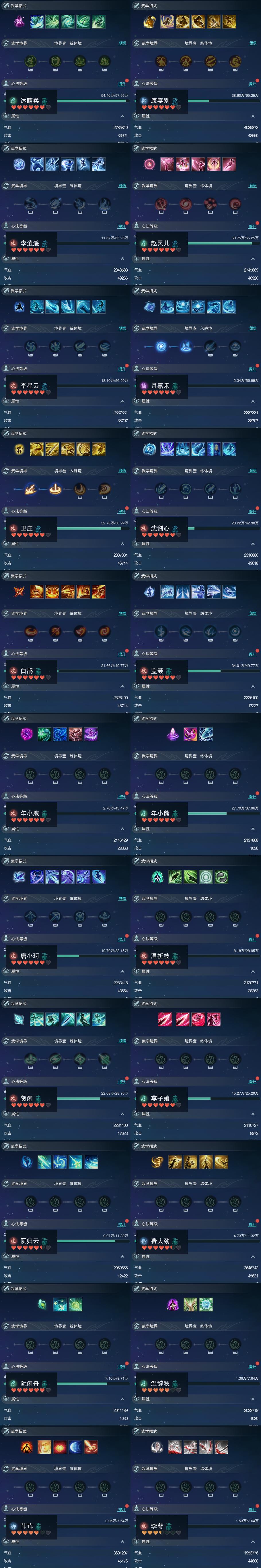 【同伴】沐晴柔84级境界壹,康宴别81级境界壹,李逍遥81级境界壹,赵灵儿81级境界壹,李星云80级境界壹,月嘉禾80级境界叁,卫庄意80级境界叁,沈剑心79级境界壹,白鹊志79级境界壹,盖聂志79级境界壹,年小鹿78级境界壹,年小熊77级境界壹,唐小珂76级境界壹,温折枝75级境界壹,贺闲志75级境界壹,燕子娘74级境界壹,阮归云68级境界壹,费大劲68级境界壹,阮闲舟66级境界壹,温辞秋65级境界壹,茸茸志65级境界壹,李萼志65级境界壹