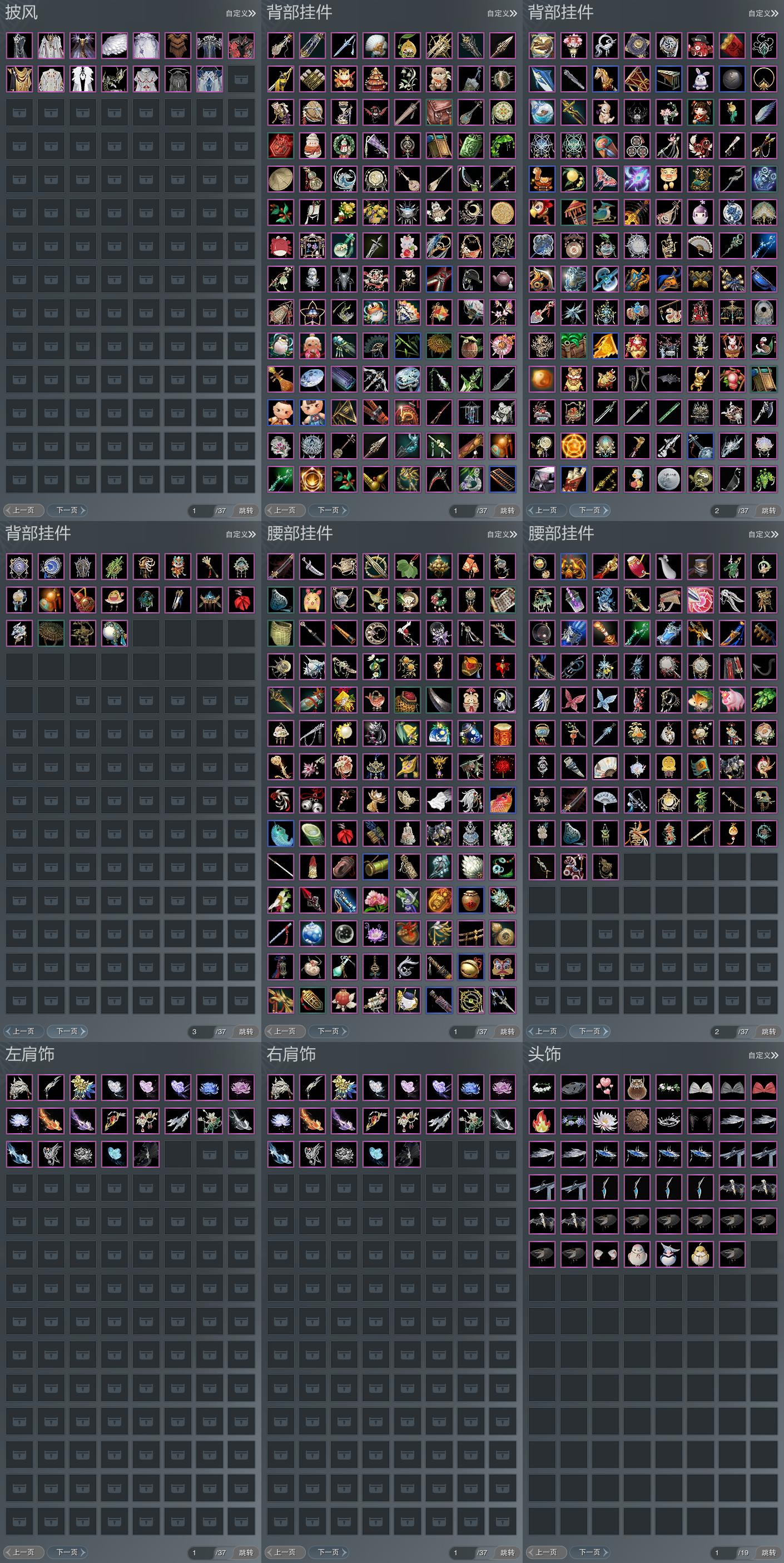 【背挂】244个[黑红尘挂件, 灵龙盒子背挂, 八七盒挂件, 龙吟盒子背挂, 梦盒挂件, 九七背挂, 镰刀挂件, 燕月盒背挂, 墨龙挂件, 瑶华盒背挂, 重花游背挂, 仙剑盒背挂, 络羽盒背挂, 瓷盒背挂, 瓷盒背挂, 蓝洛神挂件, 绿洛神挂件, 傀儡小熊, 十七背挂]