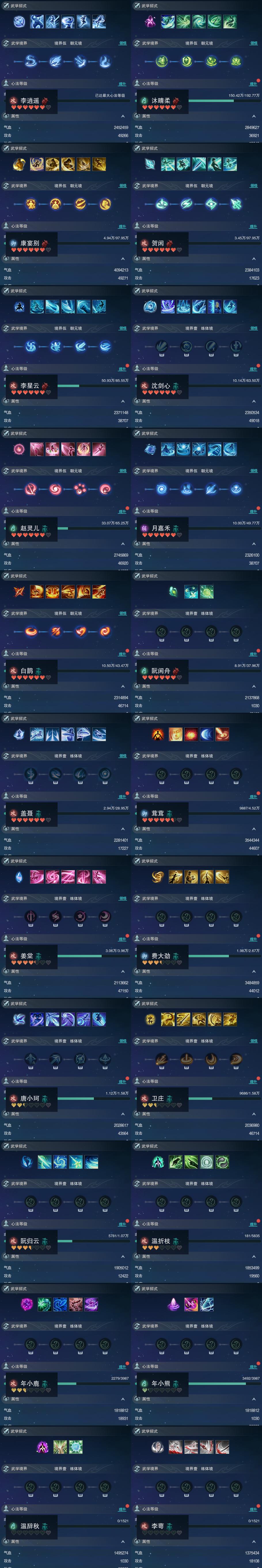 【同伴】李逍遥90级境界伍,沐晴柔89级境界伍,康宴别84级境界伍,贺闲84级境界伍,李星云83级境界伍,沈剑心82级境界壹,赵灵儿81级境界伍,月嘉禾79级境界伍,白鹊志78级境界伍,阮闲舟77级境界壹,盖聂志75级境界壹,茸茸志61级境界壹,姜棠志60级境界壹,费大劲57级境界壹,唐小珂53级境界壹,卫庄志53级境界壹,阮归云50级境界壹,温折枝44级境界壹,年小鹿40级境界壹,年小熊40级境界壹,温辞秋1级境界壹,李萼志1级境界壹