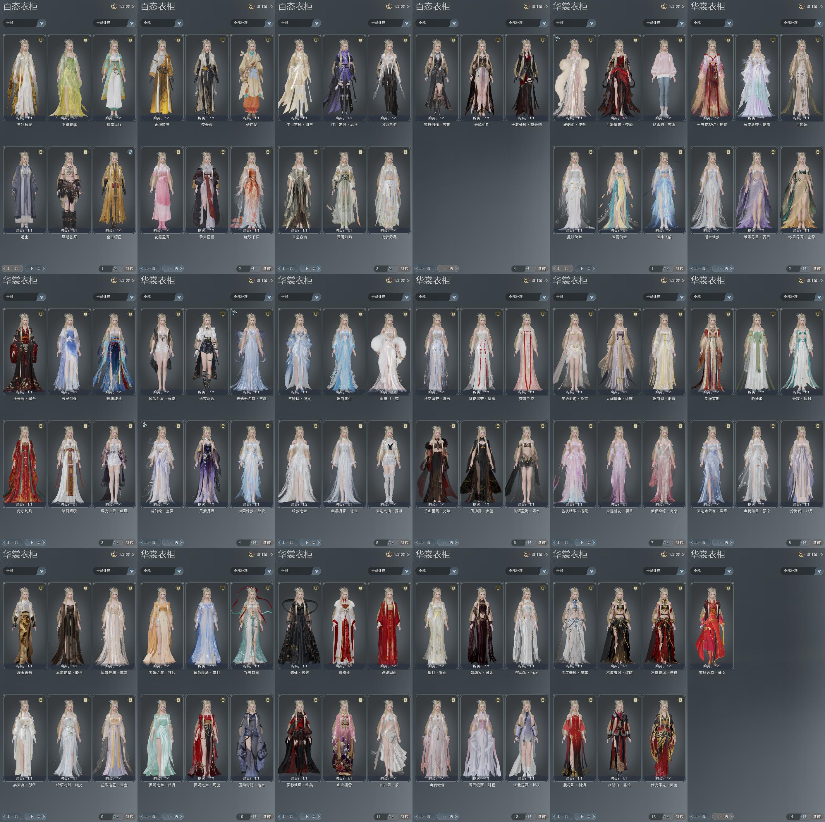 单盒成衣:[四代七夕衣, 蓝玲珑衣, 旗袍衣, 白凤舞衣, 黑凤舞衣, 唐风玉壶衣, 白狮盒衣, 蓝游园衣, 原色桃花衣, 小金龙衣, 竹笛盒衣, 白幽昙衣, 蓝兔盒衣, 白幽馥衣, 婚纱衣, 茄盒衣, 红千山衣, 紫寻香盒衣, 瑶华盒成衣, 故梦浣衣, 傀儡盒衣, 十七盒衣, 瑶台仙梦, 涉烟尘流徵]