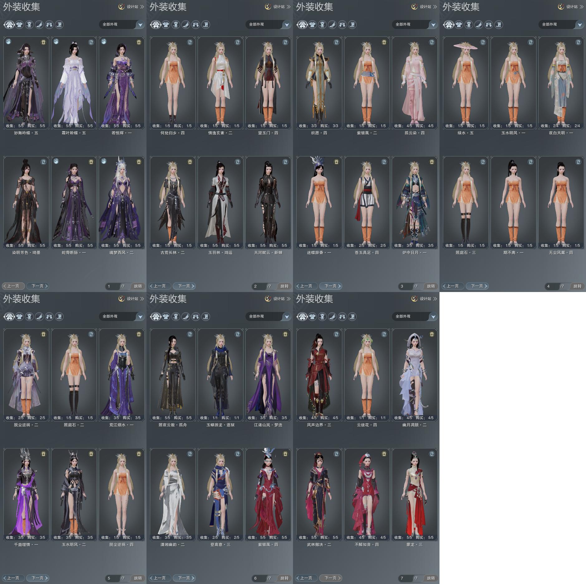 限时限量:[西津衣, 道袍, 平岸春溪, 金浮琅玉, 瀚漠民服, 雾影绛英, 烟花套, 十二周年工作服, 客行逍遥夜影, 幽涧愀兮, 白泳衣, 黑泳衣, 十三周年成衣, 粉水母, 云闲归鹤, 紫游仙, 风起苍原]