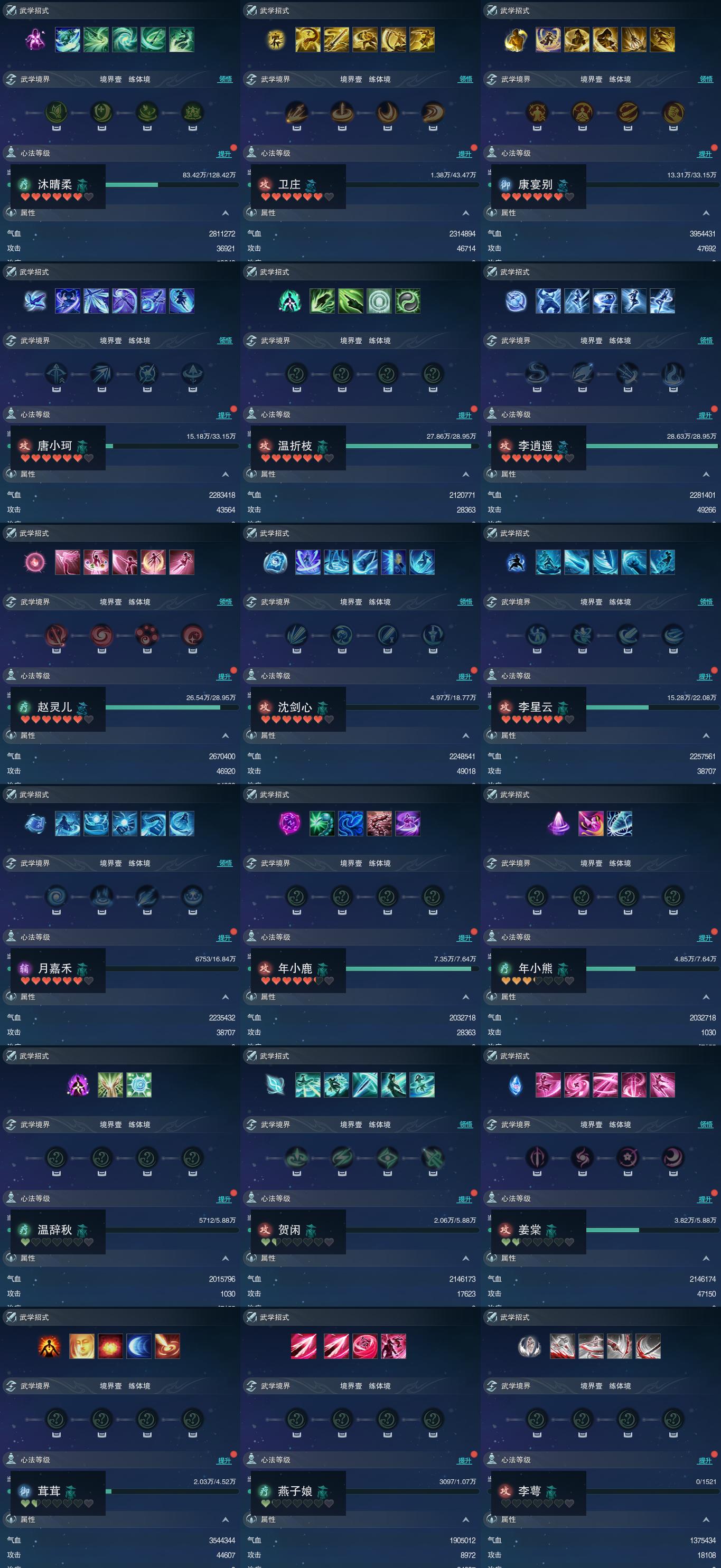 【同伴】沐晴柔86级境界壹,卫庄意78级境界壹,康宴别76级境界壹,唐小珂76级境界壹,温折枝75级境界壹,李逍遥75级境界壹,赵灵儿75级境界壹,沈剑心73级境界壹,李星云73级境界壹,月嘉禾71级境界壹,年小鹿65级境界壹,年小熊65级境界壹,温辞秋63级境界壹,贺闲志63级境界壹,姜棠志63级境界壹,茸茸志61级境界壹,燕子娘50级境界壹,李萼志1级境界壹