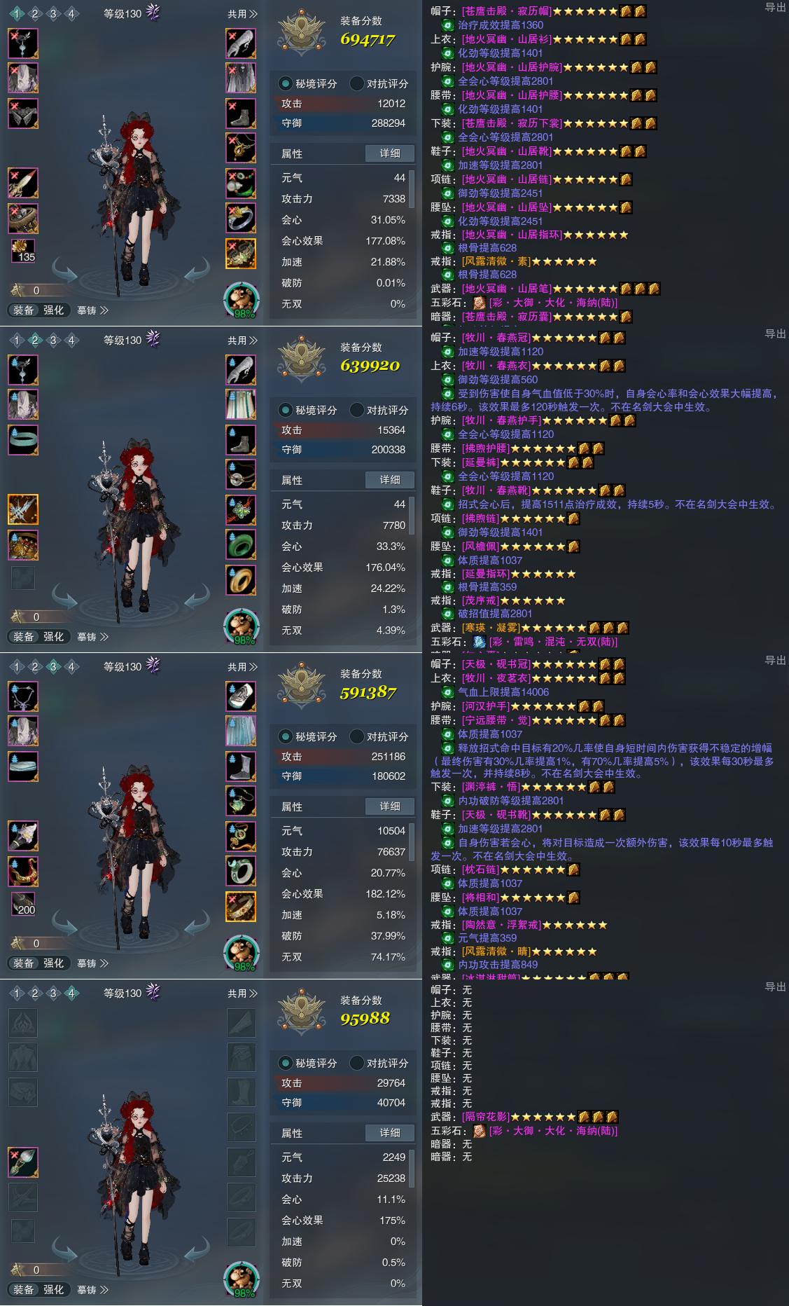 【装备】130级,离经易道PVP694717,离经易道PVE639920,花间游PVE591387,装备四95988