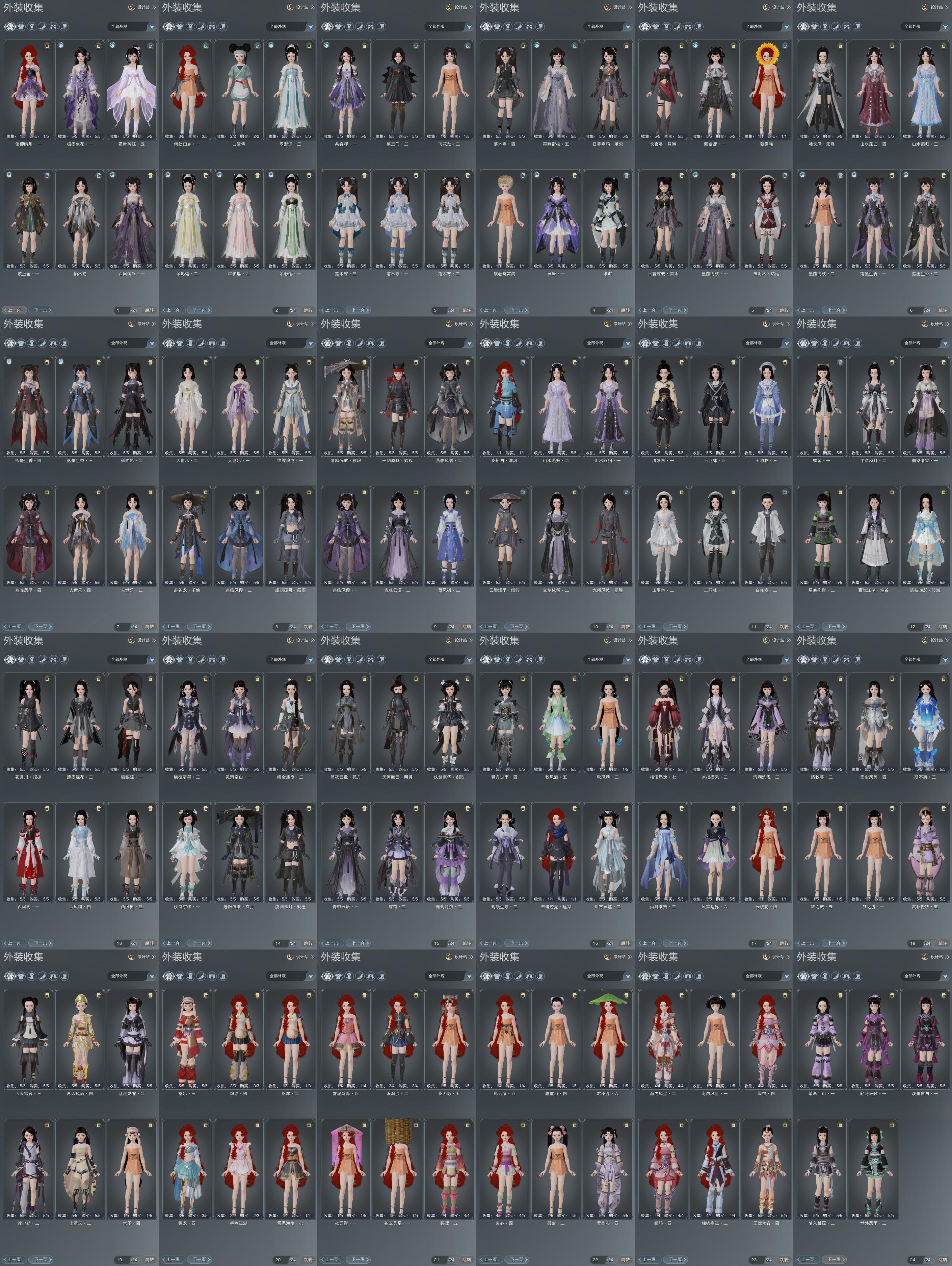 限时限量:[白九壤, 水云寒桑海, 明镜高悬, 富婆套, 水云寒重风, 打歌服, 水云寒写晖, 水云寒雪涛, 鸢露洛翎, 兰庭凤香, 红云飞, 海韵小调, 月寒蛱蝶, 紫玫瑰, 蓝九天, 雪衣寒川, 雪衣寒山, 微草暮雨, 白长天, 牵云碧屏, 粉封川, 天涯空亭, 红舞步, 重天飞笙, 望云山椿, 霆螭月华, 十三万资历衣, 十六万资历衣, 侠影空山, 冷霜霏微, 锦夜游蔚苍, 冷霜槛菊, 中宵渊霜, 金浮琅玉, 踏月幽梦, 雾影孤鸿, 兰若渝州, 紫西风, 寒梅玉露, 容与忘忧, 紫长安, 烟花套, 依涵, 沉笙, 挽砚, 黑枕戈, 蓝枕戈, 白枕戈, 黄枕戈, 镜湖吹荷, 镜湖云遥, 镜湖踏晓, 镜湖阑珊, 琴台顾鸣筝, 琴台顾素手, 琴台顾金粟, 琴台顾玉弦, 楚山流光, 楚山破晓, 楚山初晨, 楚山余晖, 点寒星映涟, 点寒星素晖, 点寒星沉玉, 点寒星樱尾, 夜沉列星, 十二周年工作服, 玉悬窗烟霭, 玉悬窗棠语, 客行逍遥夜影, 客行逍遥撷英, 客行逍遥天旷, 小红龙衣, 小黑龙衣, 巫歌如匕, 盈露川陵, 盈露鹤清, 盈露影悠, 盈露珏茗, 流夜窈蔚, 流夜辉墨, 流夜寄雪, 流夜娆绯, 一期福袋成衣, 新锦绣明辉, 幽涧愀兮, 白泳衣, 黑泳衣, 黄泳衣, 蓝泳衣, 十三周年成衣, 梦生秋淡云, 梦生秋月影, 梦生秋暗玉, 梦生秋浮香, 绿天河, 黑天河, 蓝水母, 粉水母, 天河对影云砂, 清商风饮迟燕, 清商风饮驻春, 清商风饮流萦, 清商风饮蘅雅, 万川青绿黛瑾, 万川青绿石琅, 万川青绿云母, 万川青绿辰砂, 蓝浪海, 粉浪海, 绿浪海, 黄浪海, 庭落西风, 十四周年工作服, 云闲归鹤, 蓝清光, 黄清光, 紫清光, 黑清光, 绿玉妆, 蓝绮阁, 白绮阁, 浮光绡, 蓝碧海, 紫碧海, 白刺客服]