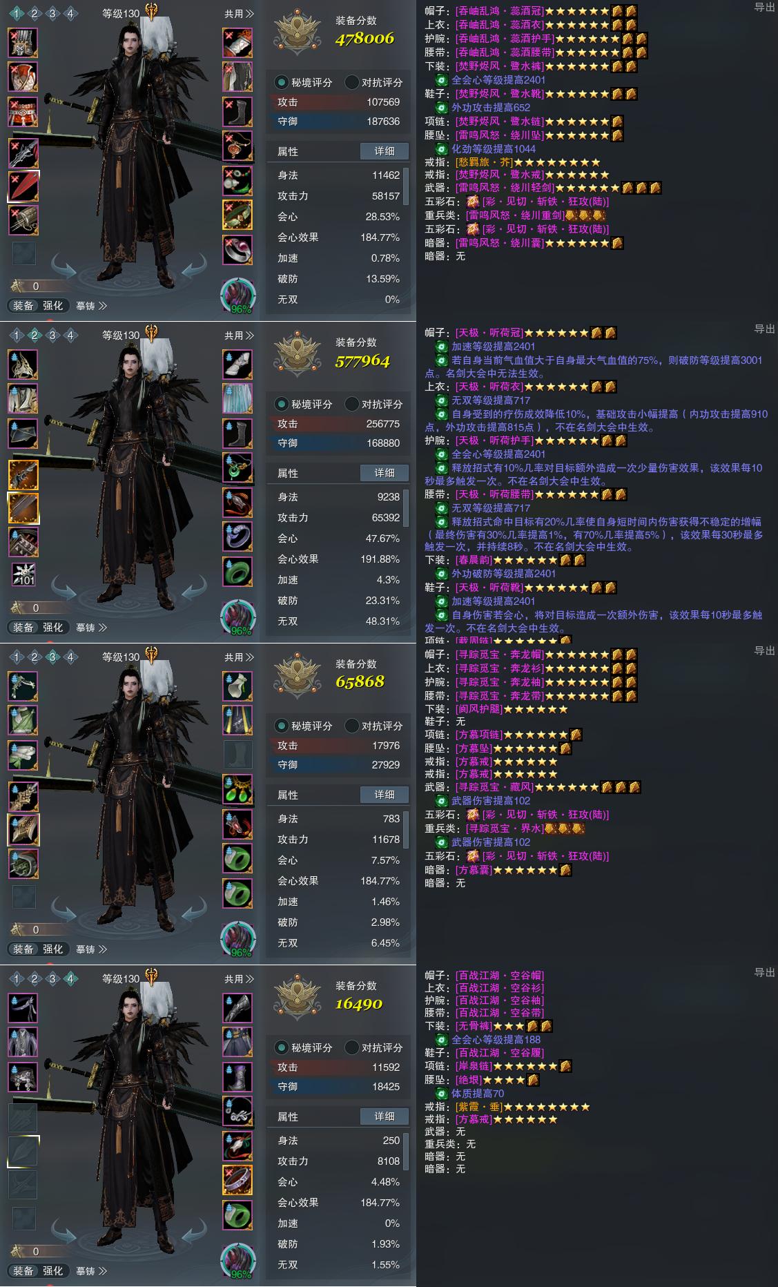【装备】130级,山居剑意/问水诀PVP478006,山居剑意/问水诀PVE577964,装备三65868,装备四16490