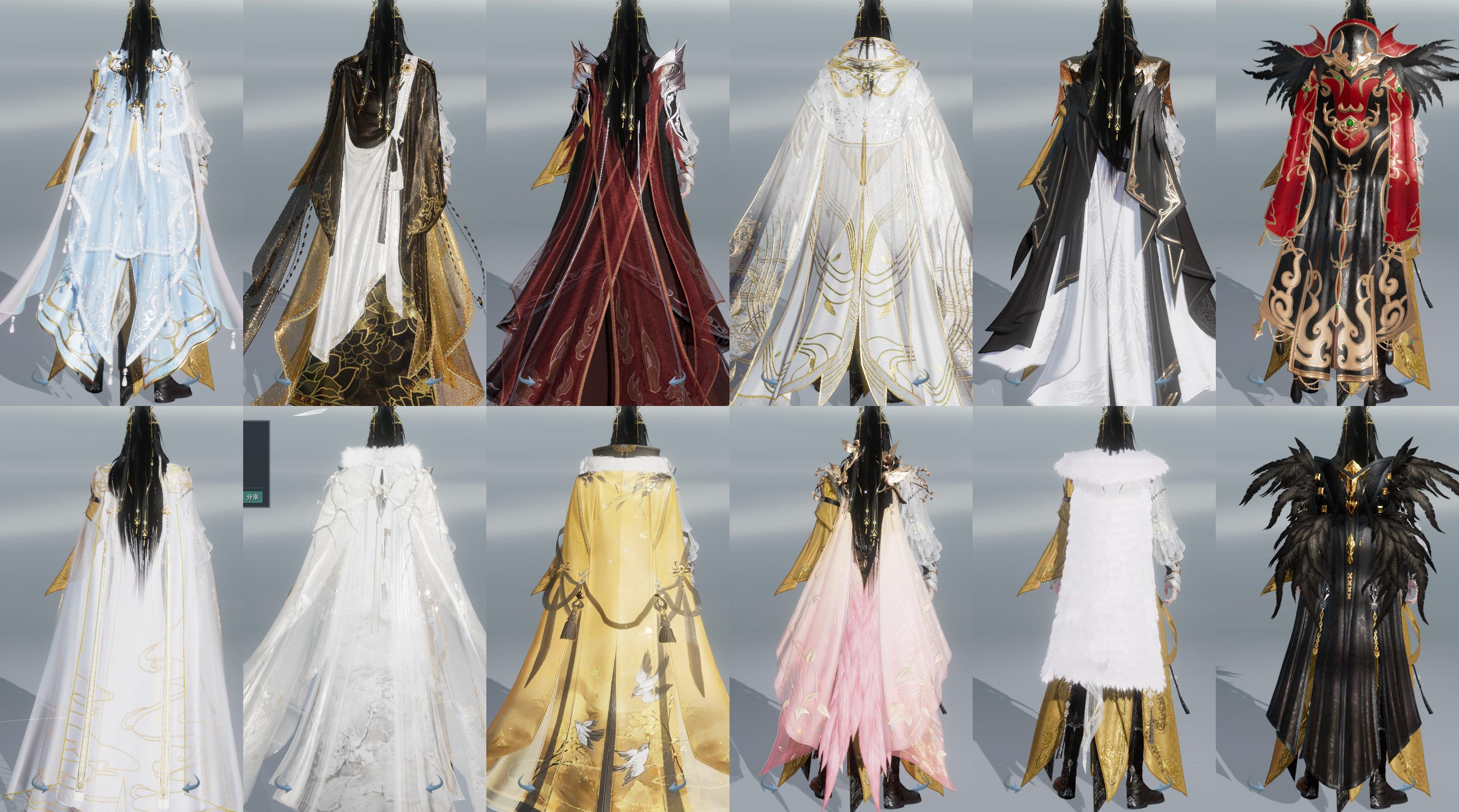 【披风】14个,[刀宗预热披风, 衍天预热披风, 7W资历披风, 情R枕, 一代黑, 叽盒子披风, 猪盒子披风, 星演披风, 莲华盒披风, 素玉琼天, 华雀粉披风, 二代战令披风]