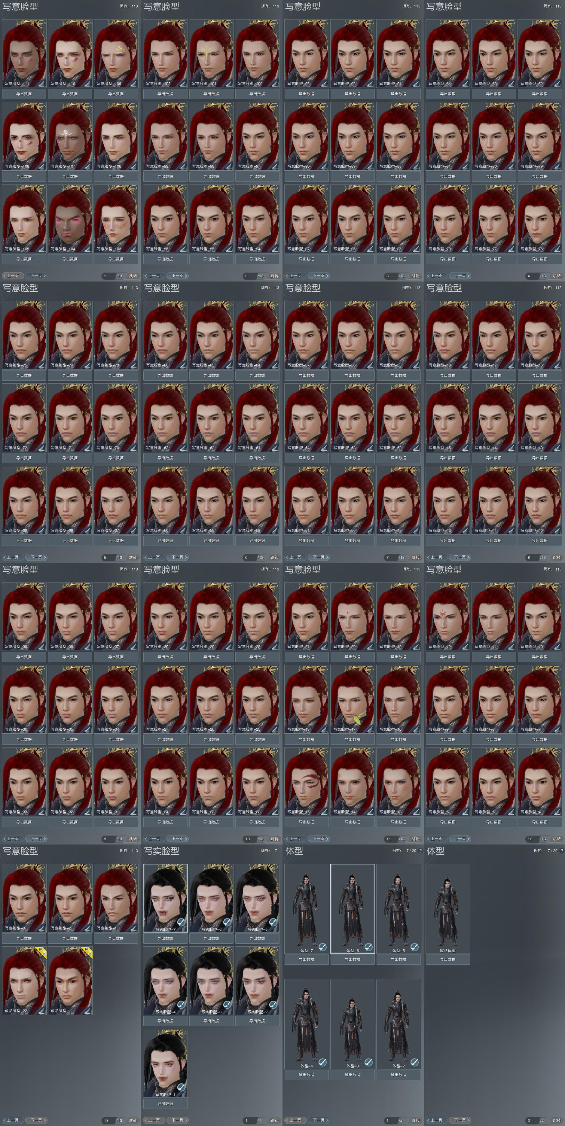 【捏脸】写意脸型113个,写实脸型7个,体型7个