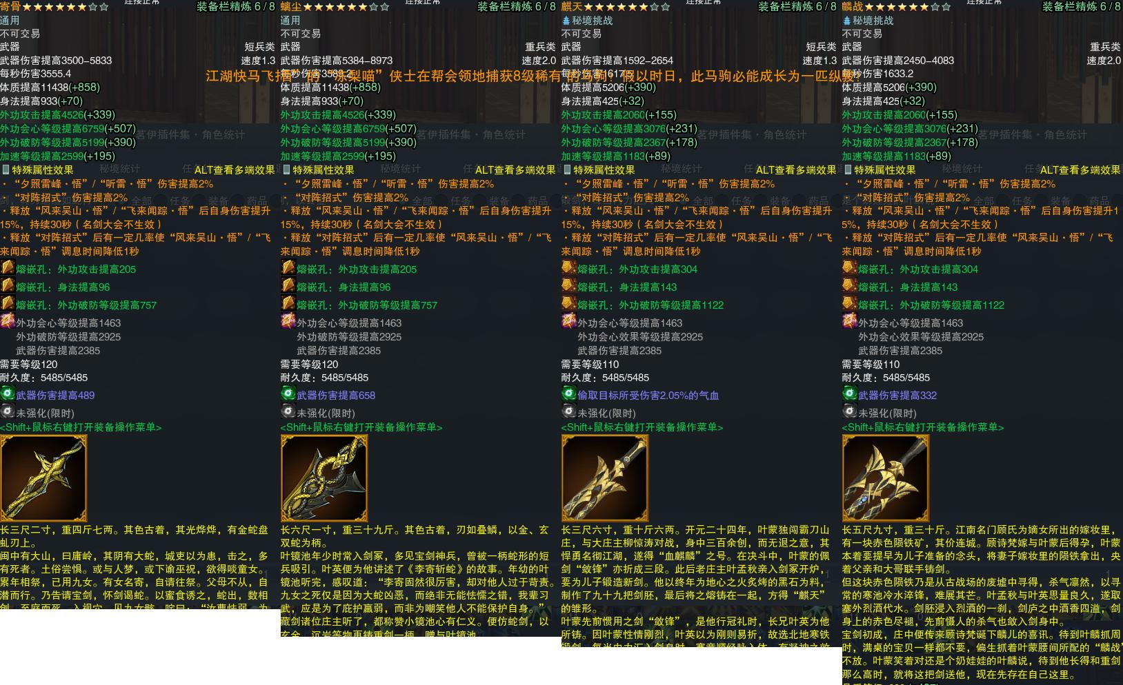 【橙武】(仅本门派)[120小铁*22, 130小铁*212, 奇遇书照影*1, 80玄晶*1, 110小铁*12, 100小铁*206, 95小铁*201, 90小铁*216, 80小铁*200, 70小铁*203, 120CW寄骨, 120CW螭尘, 110CW麒天, 110CW麟战, 100CW君行四海, 100CW鹿卢, 门派特效岚尘金蛇]