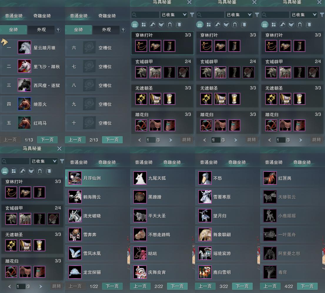 【坐骑】5个[西风瘦逐狱, 星云踏月骓, 里飞沙踏秋]