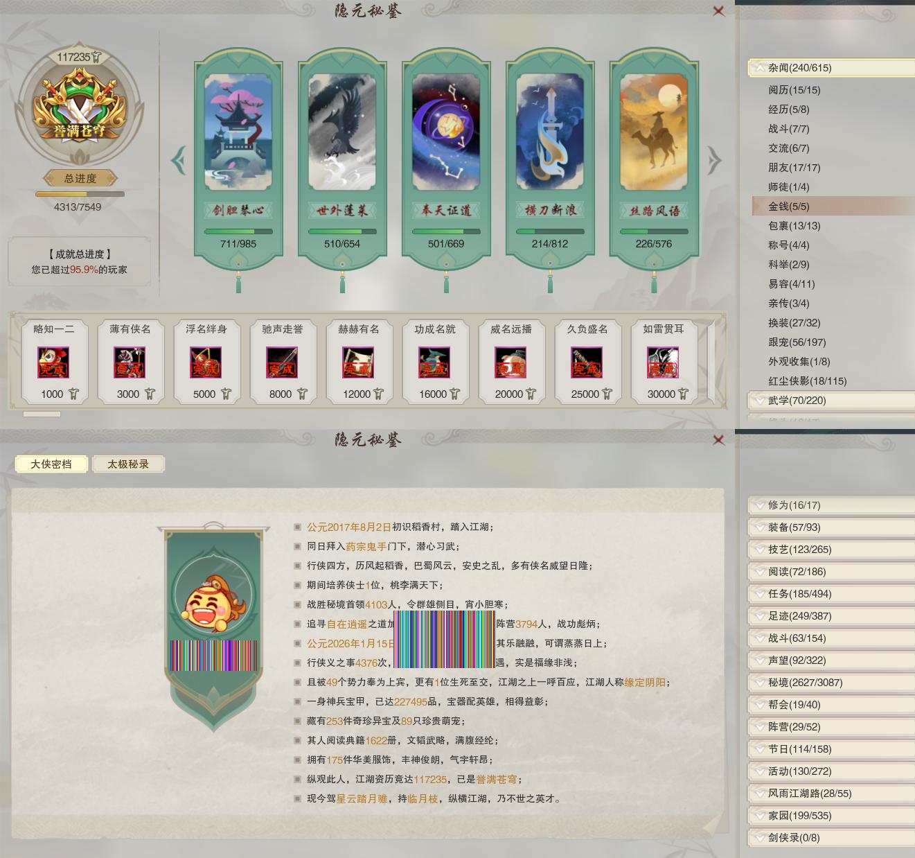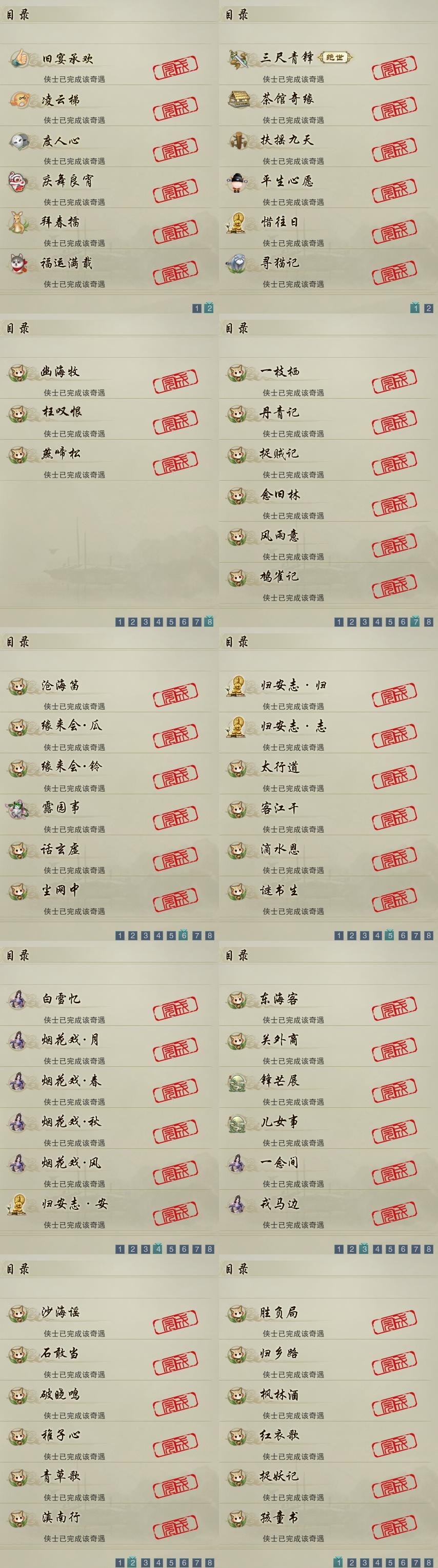 【奇遇】12个[平生心愿, 惜往日, 三尺青锋, 扶摇九天, 茶馆奇缘, 寻猫记, 庆舞良宵, 凌云梯, 度人心, 旧宴承欢, 拜春擂, 福运满载]