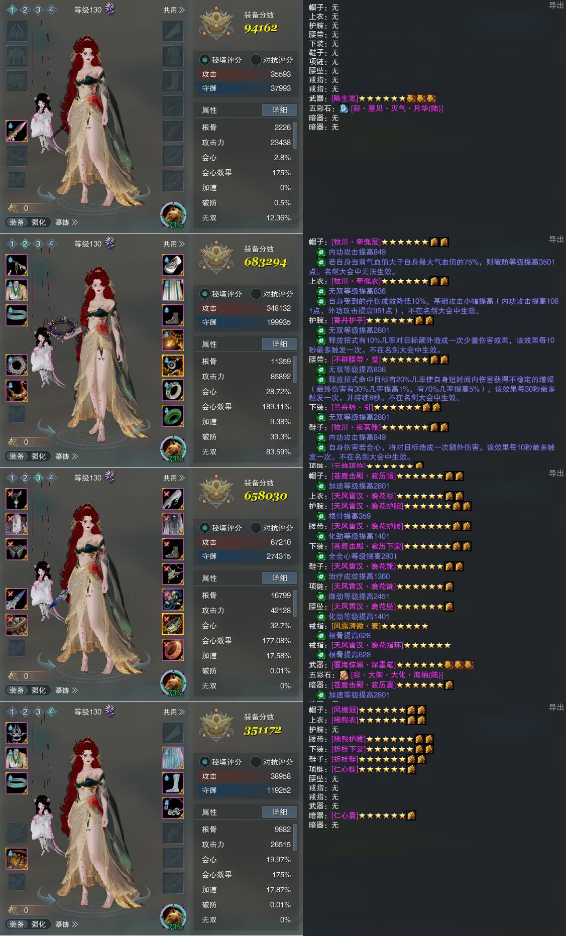 【装备】130级,装备一94162,花间游PVE676462,万花装备三652535,装备四351172