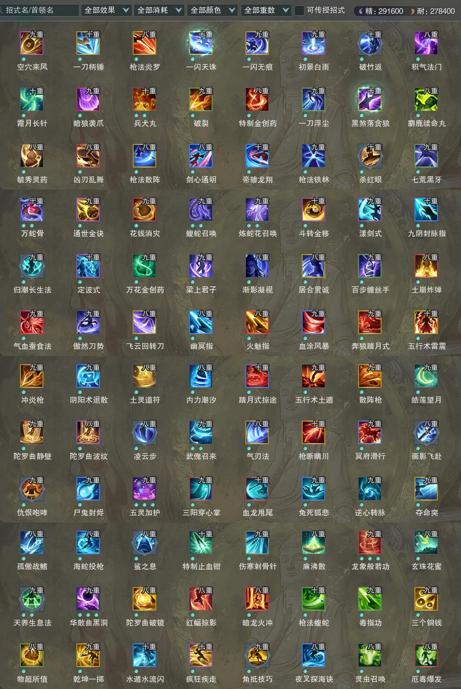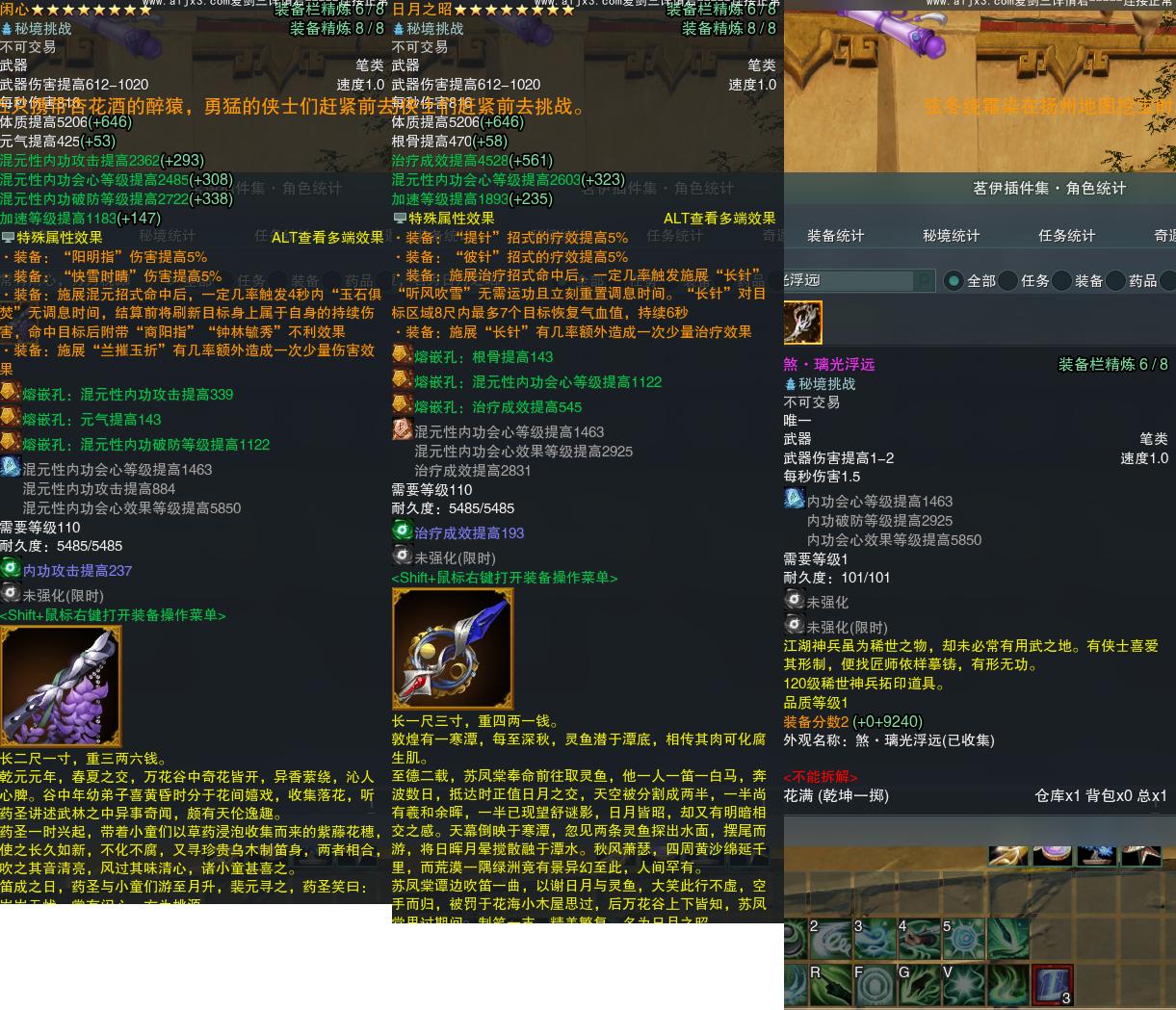 120玄晶*1, 110玄晶*1, 90玄晶*1, 70玄晶*2, 110小铁*255, 100小铁*388, 95小铁*306, 90小铁*157, 80小铁*361, 70小铁*278, 110CW闲心, 110CW日月之昭, 95CW墨颠, 95CW兰亭香雪, 90CW落凤, 门派特效雪凤冰王笛]