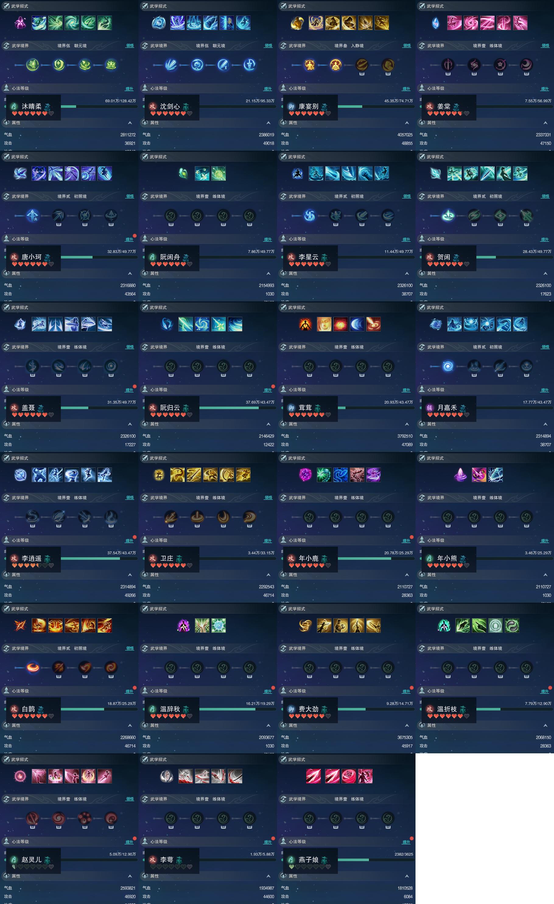 【同伴】沐晴柔86级境界伍,沈剑心85级境界伍,康宴别82级境界叁,姜棠意80级境界壹,唐小珂79级境界贰,阮闲舟79级境界壹,李星云79级境界贰,贺闲意79级境界贰,盖聂79级境界壹,阮归云78级境界壹,茸茸志78级境界壹,月嘉禾78级境界贰,李逍遥78级境界壹,卫庄志76级境界壹,年小鹿74级境界壹,年小熊74级境界壹,白鹊慈74级境界贰,温辞秋72级境界壹,费大劲70级境界壹,温折枝69级境界壹,赵灵儿69级境界壹,李萼志63级境界壹,燕子娘39级境界壹