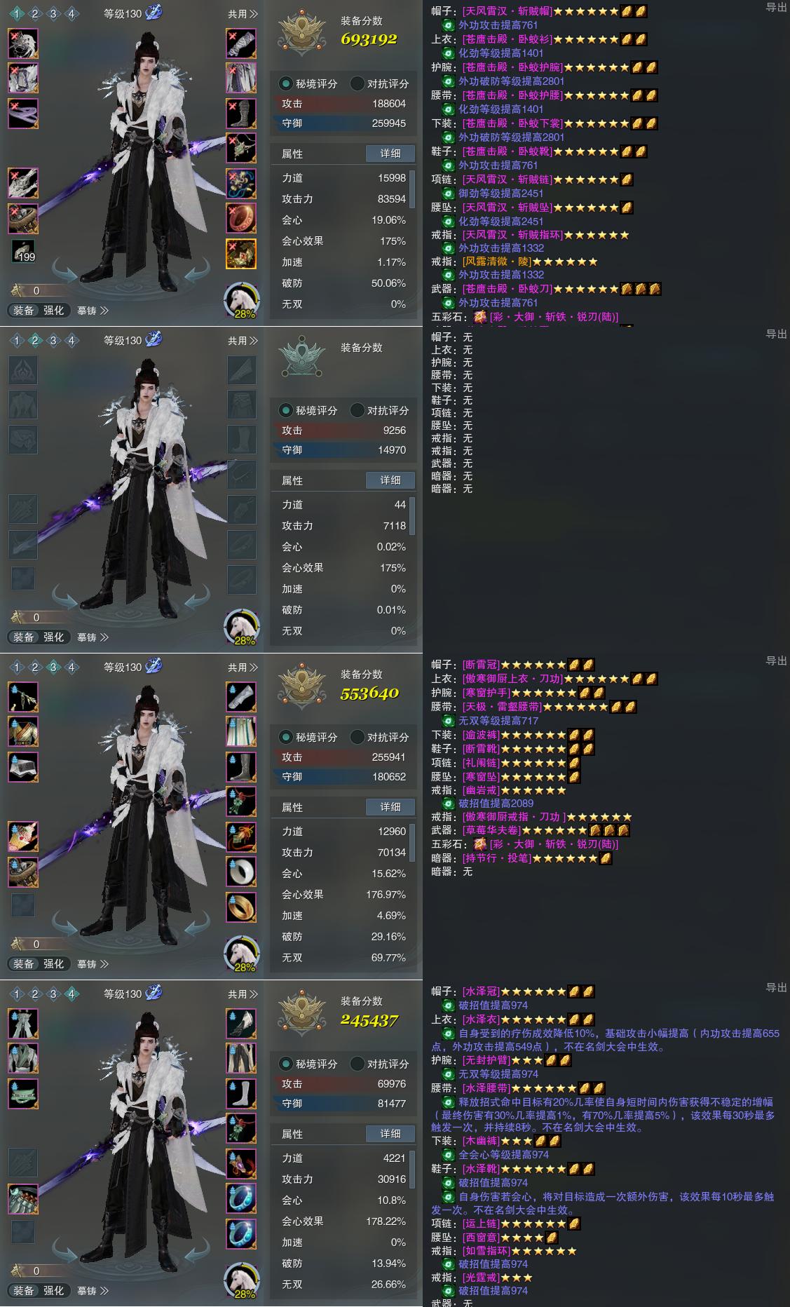 【装备】130级,北傲诀PVP693192,装备二0,北傲诀PVE553640,装备四245437