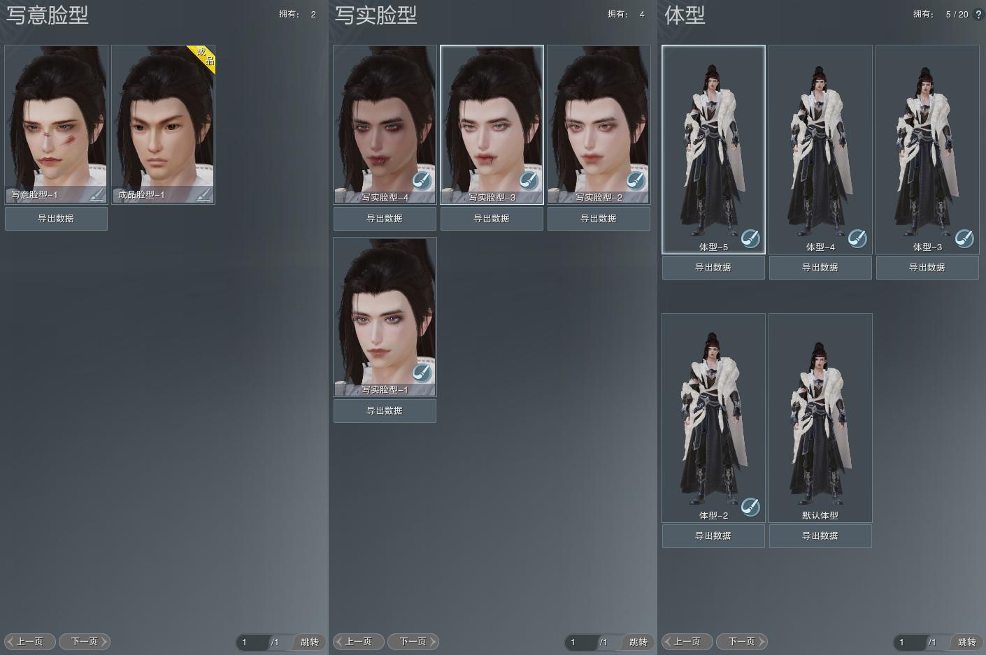 【捏脸】写意脸型2个,写实脸型4个,体型5个