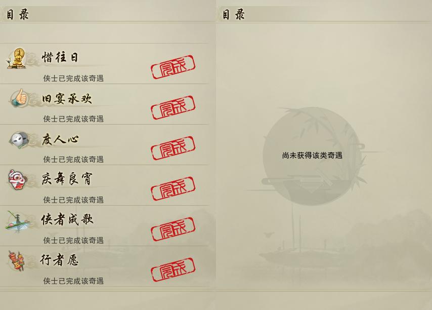 【奇遇】5个[惜往日, 庆舞良宵, 度人心, 旧宴承欢, 侠者成歌]