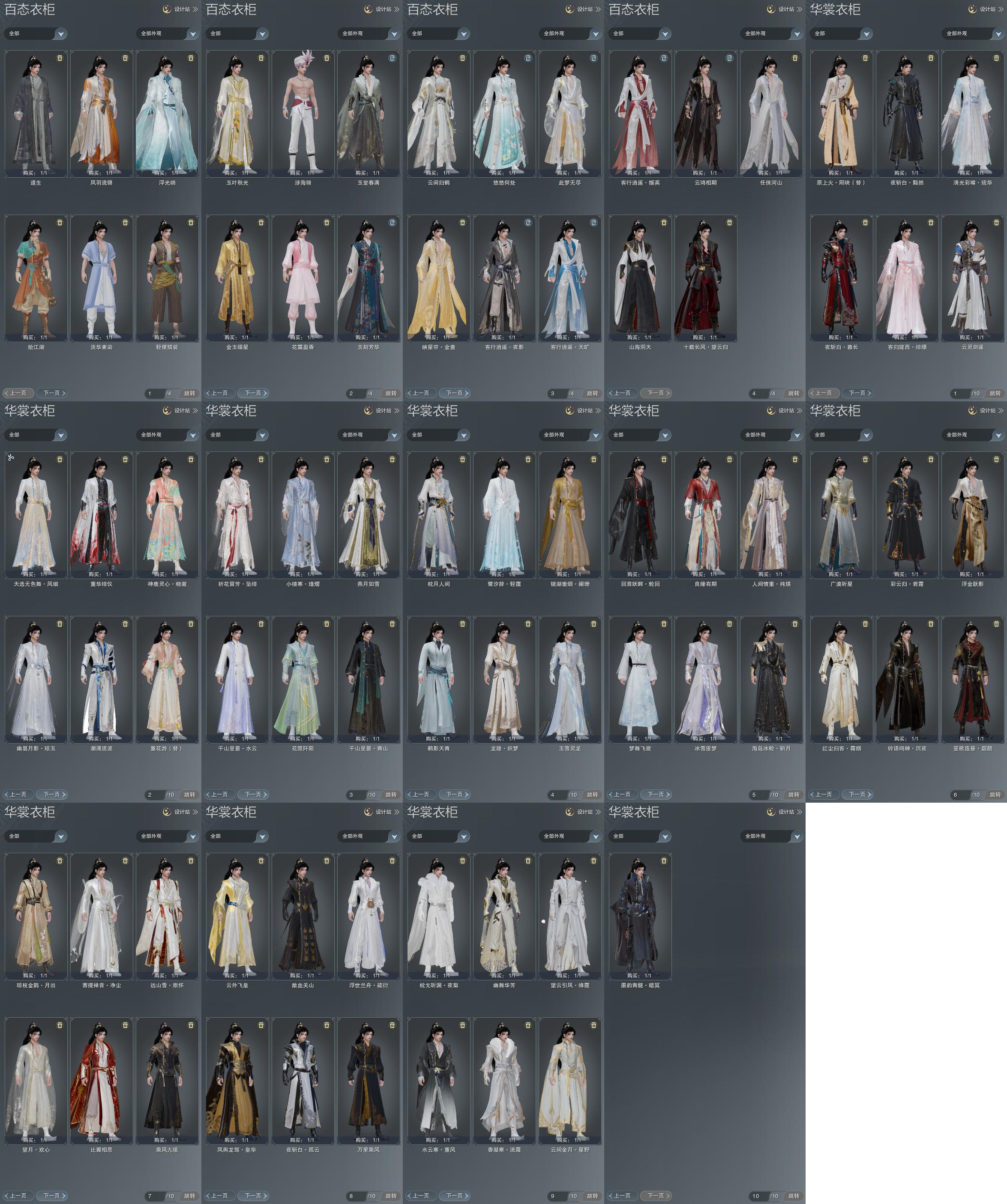 单盒成衣:[五七盒衣, 白菩提衣, 唐风韶颜衣, 白红尘衣, 小金龙衣, 二胡盒衣, 黑海岛衣, 紫人间盒衣, 七七盒衣, 白幽昙衣, 蓝钻盒衣, 粉鹿衣, 蓝鹭衣, 黄上火(替), 白千山衣, 粉陇西成衣, 重花游衣替]