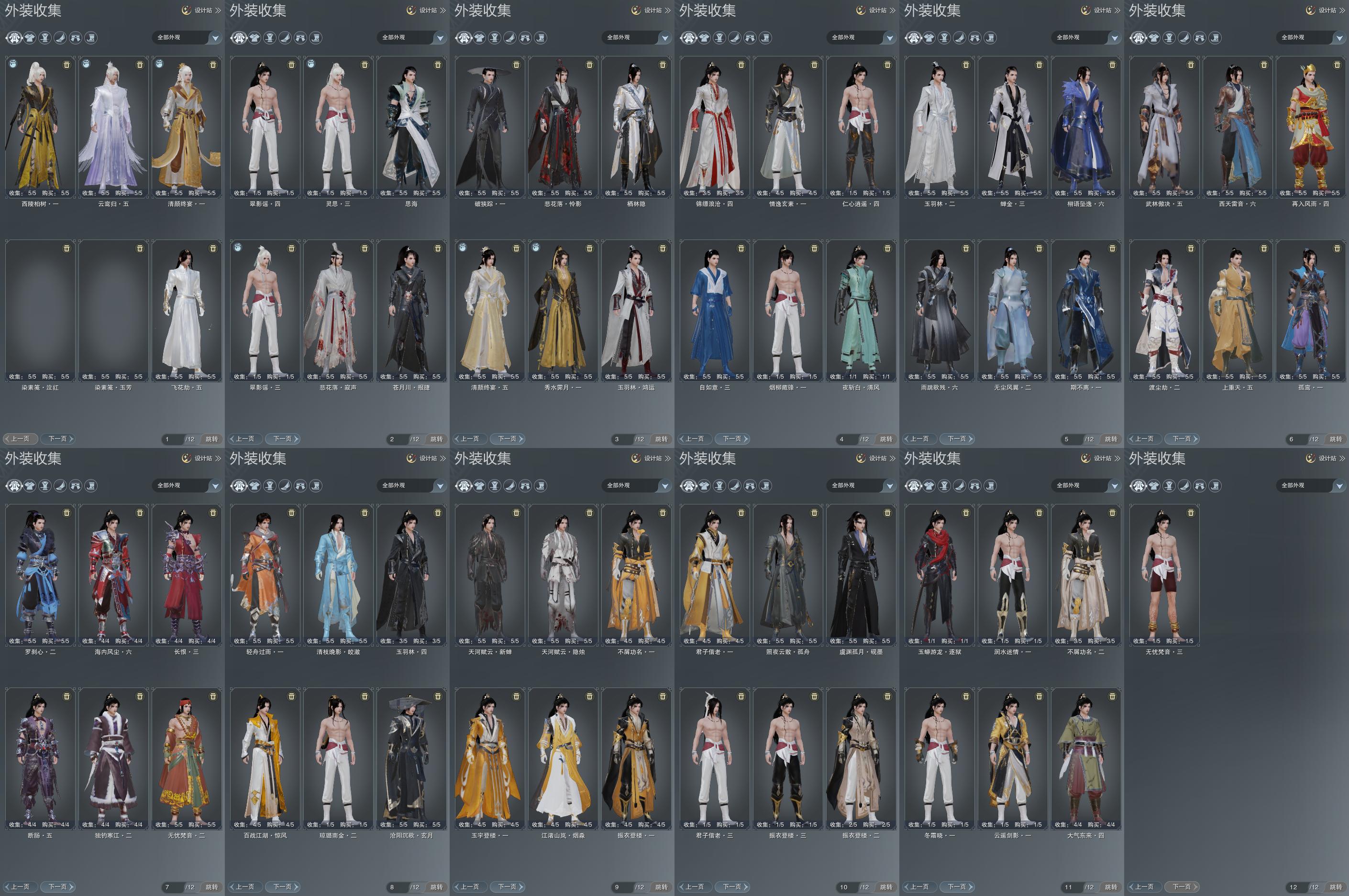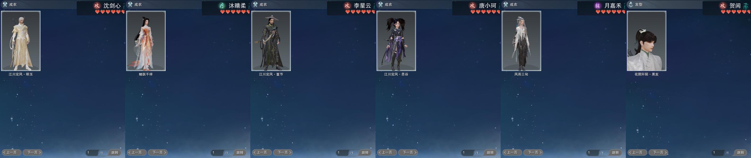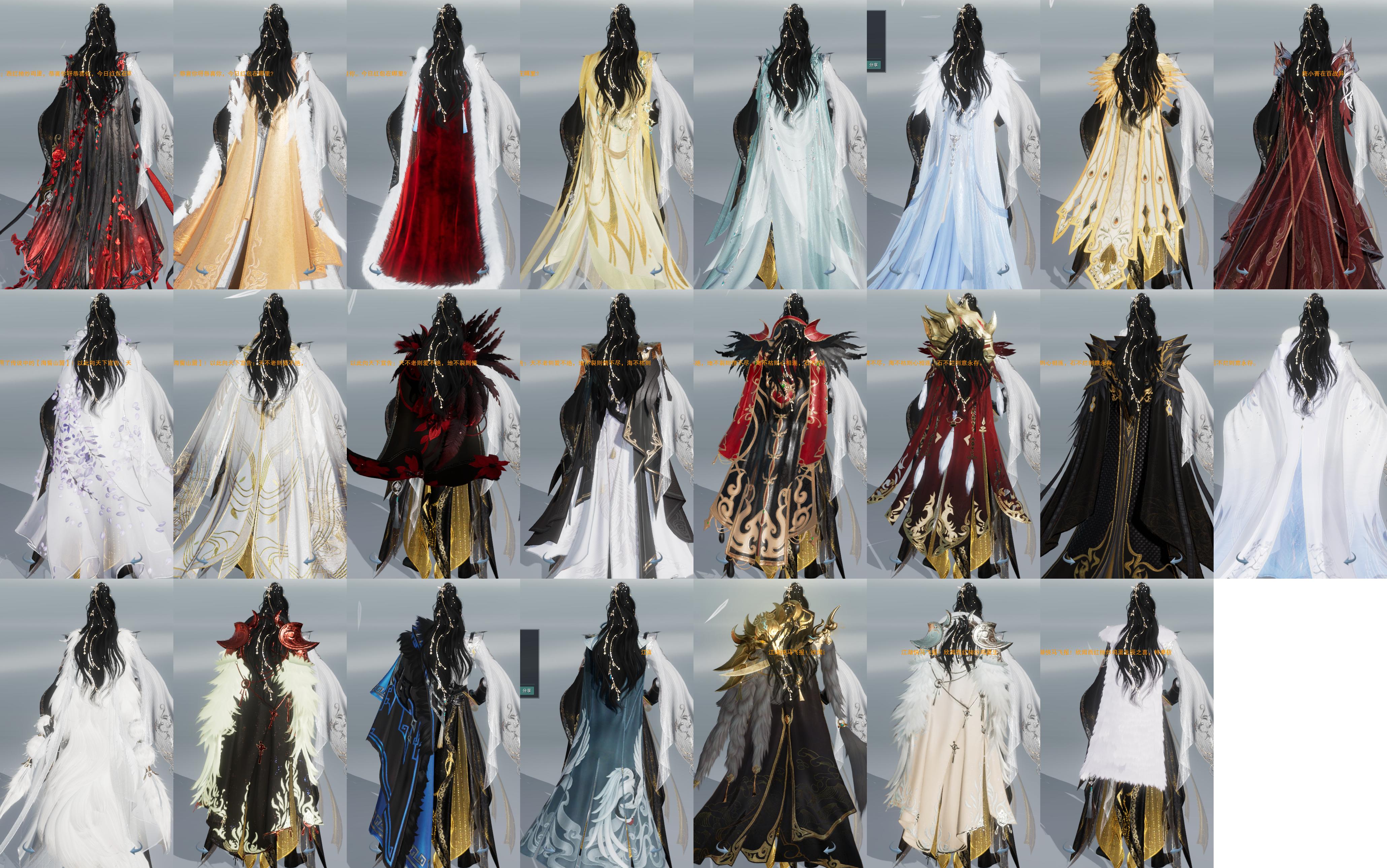 限时限量:[富婆套, 水云寒重风, 打歌服, 重华绯仪, 道袍, 望云绛霞, 十三万资历衣, 十六万资历衣, 烟花套, 白枕戈, 镜湖阑珊, 十二周年工作服, 客行逍遥夜影, 客行逍遥撷英, 客行逍遥天旷, 十三周年成衣, 十四周年工作服, 云闲归鹤, 浮光绡]